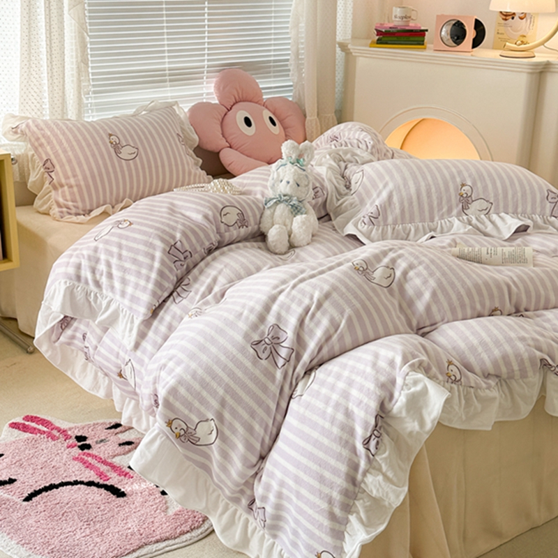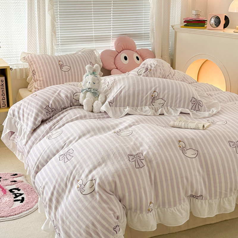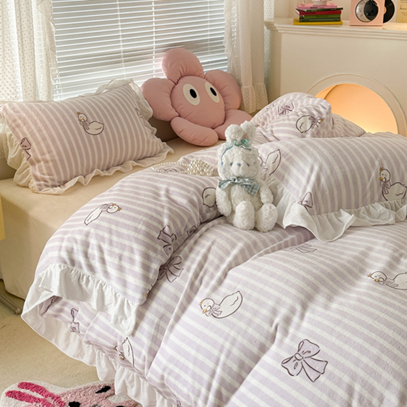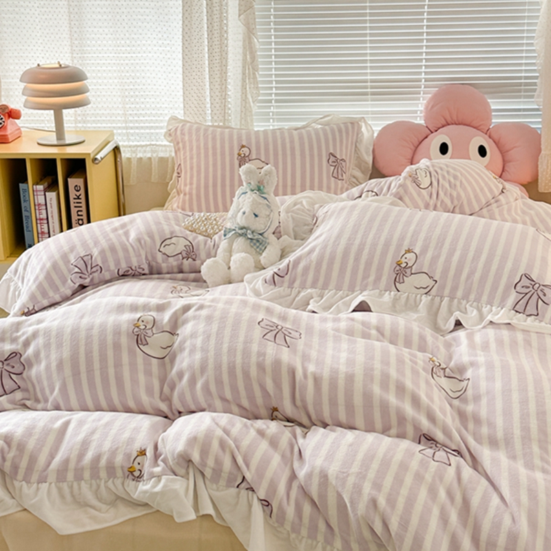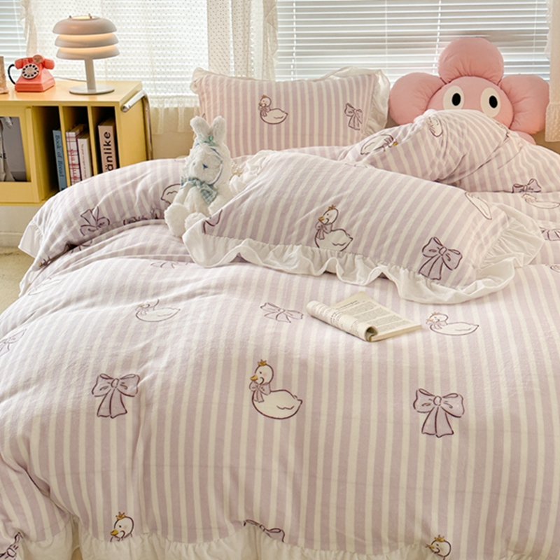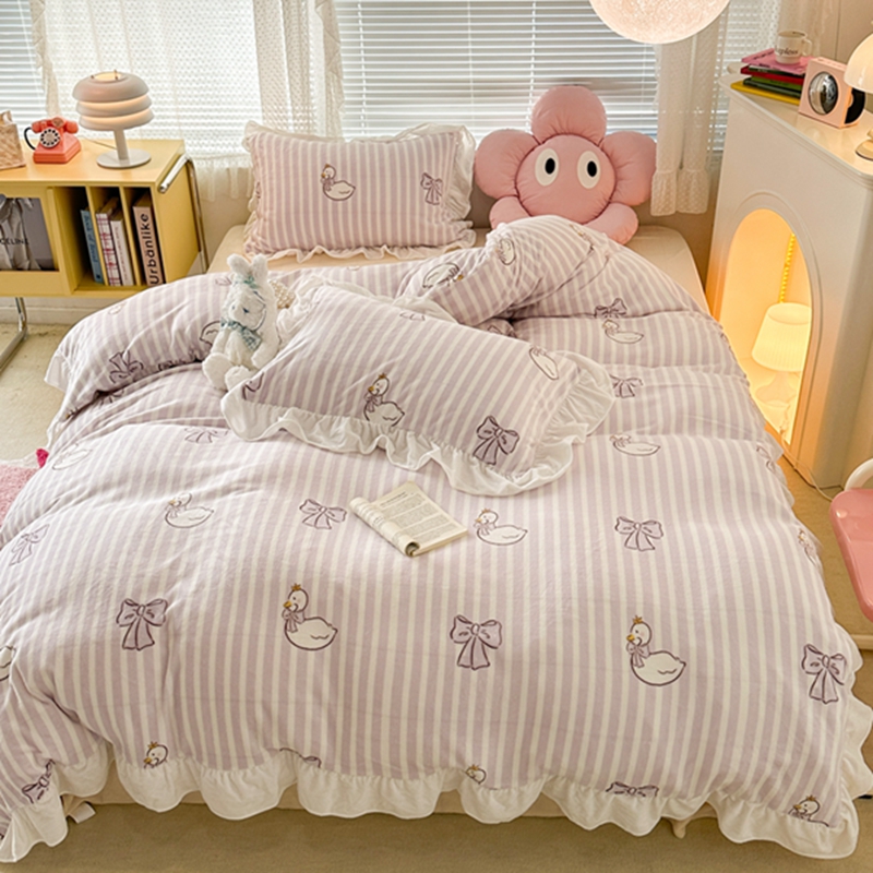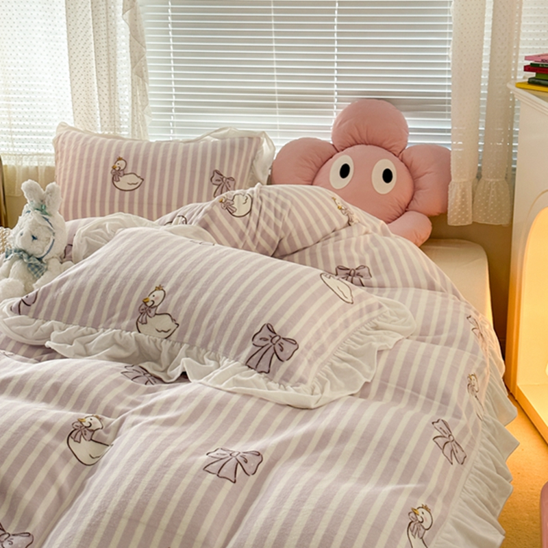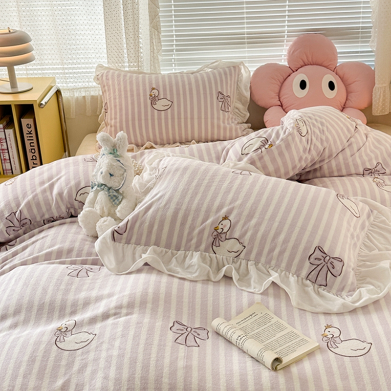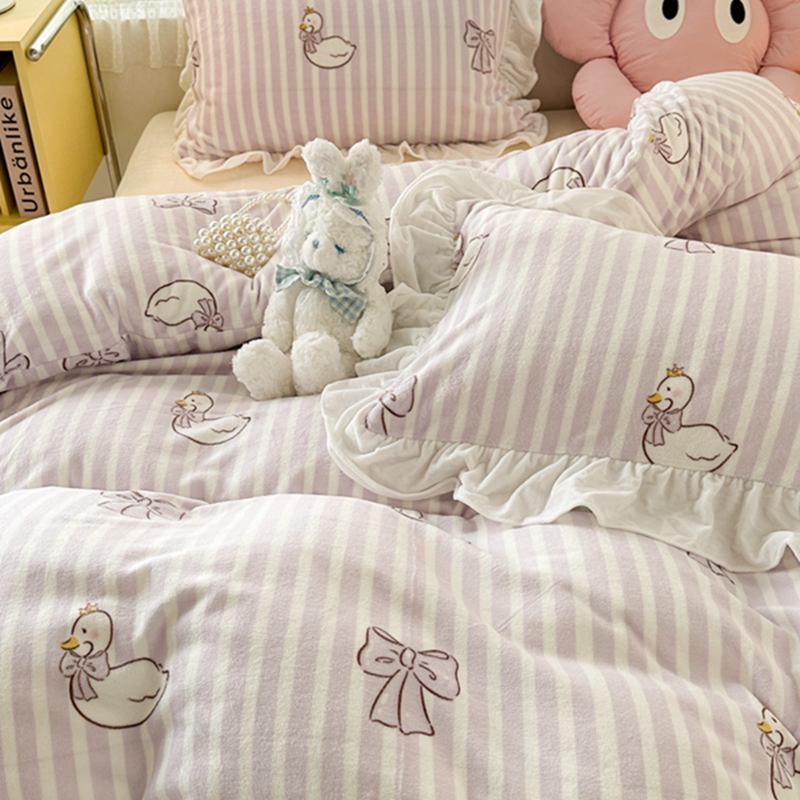 昔可家纺 2023新款花边款牛奶绒四件套 芭蕾天鹅