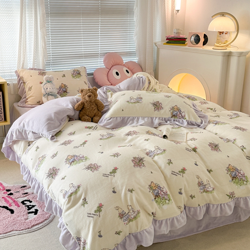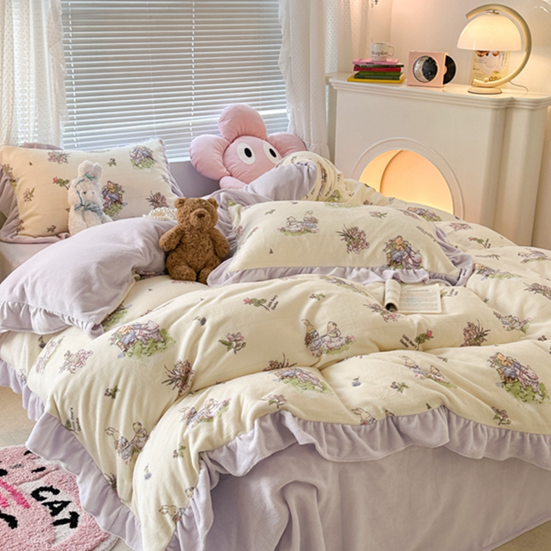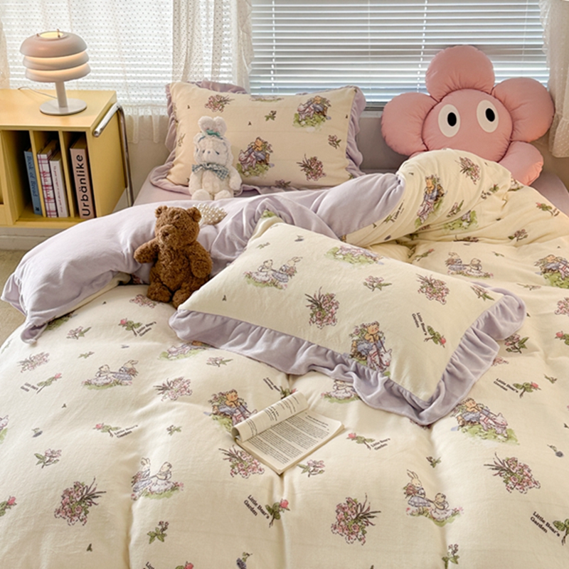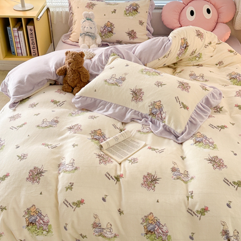 (总)昔可家纺 2024新款印花牛奶绒四件套系列-洛丽塔风,萝莉小兔,小熊烘焙屋,小熊玩偶屋