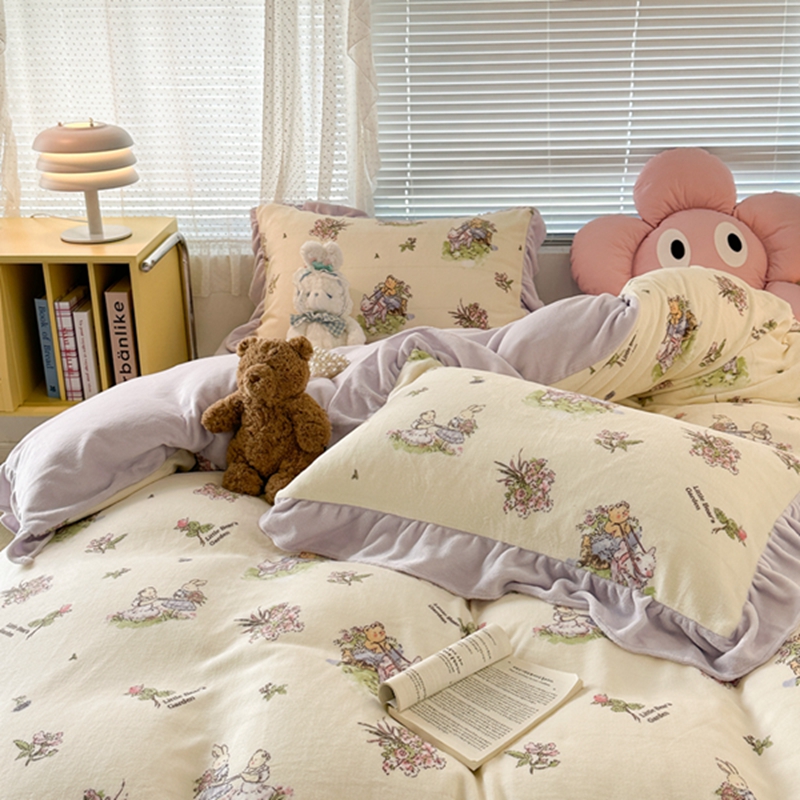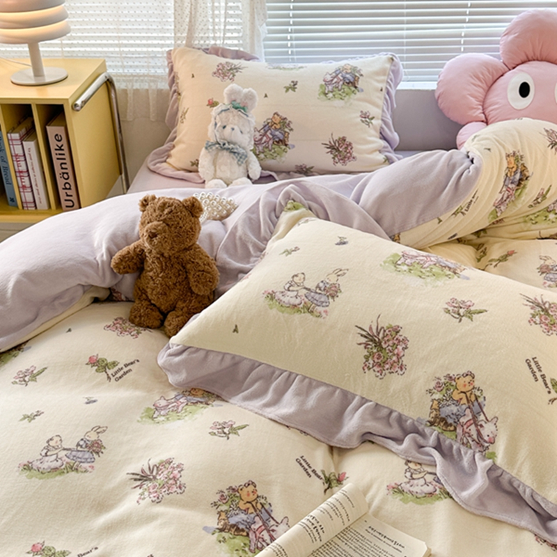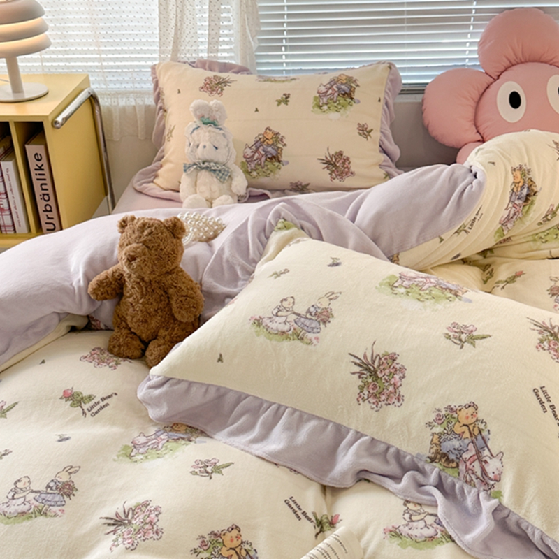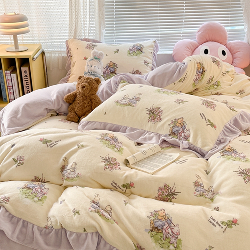 商品名称:昔可家纺 2023新款花边款牛奶绒四件套 熊熊花园