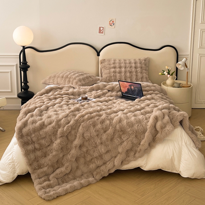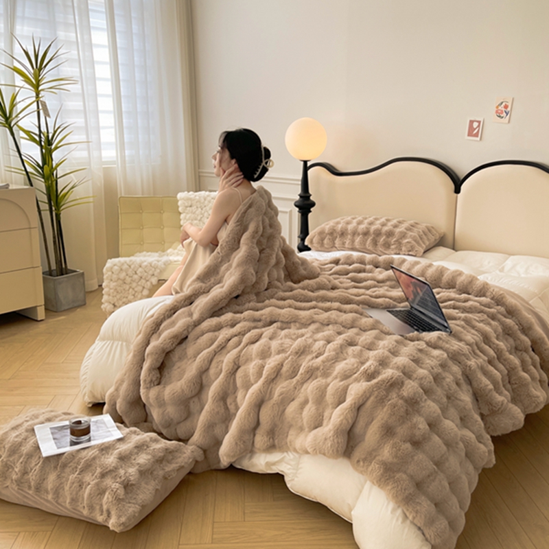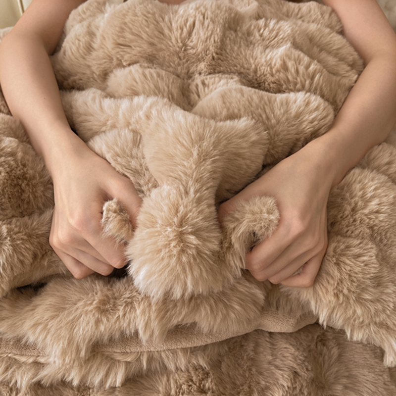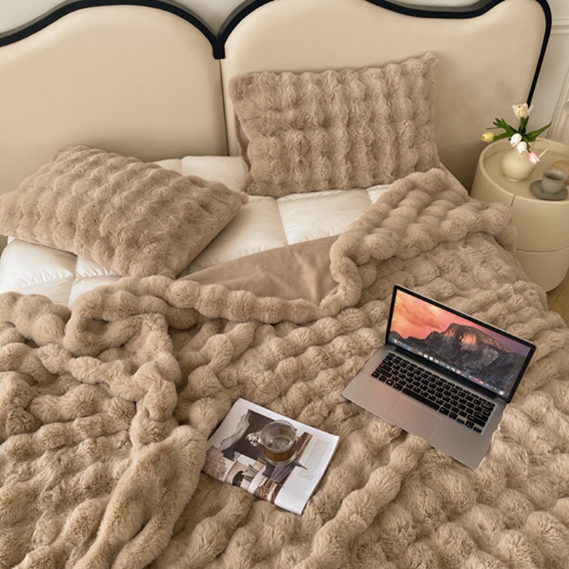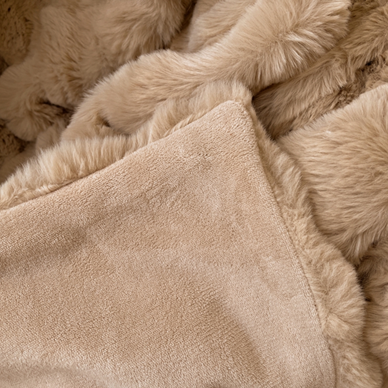 商品名称:寐眠 2024新款托斯卡纳兔毛绒加厚双层毯 浅驼