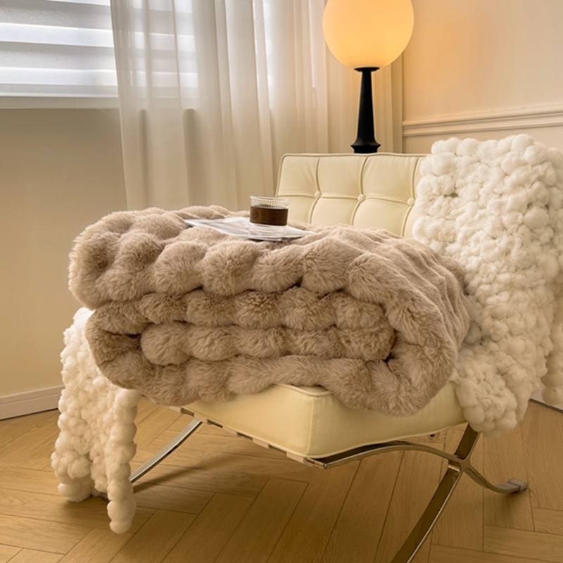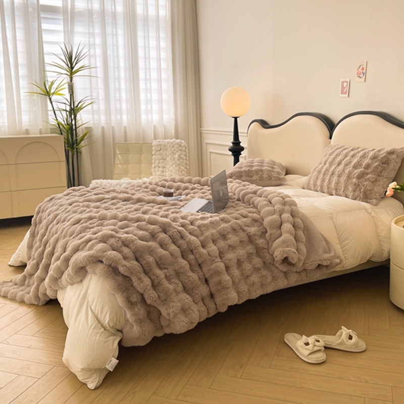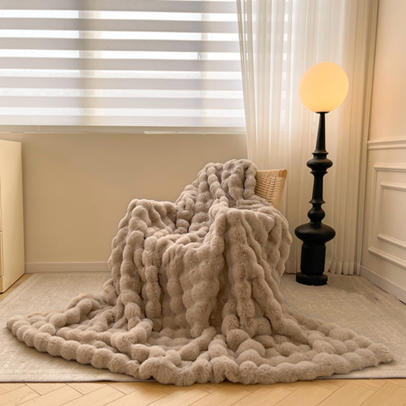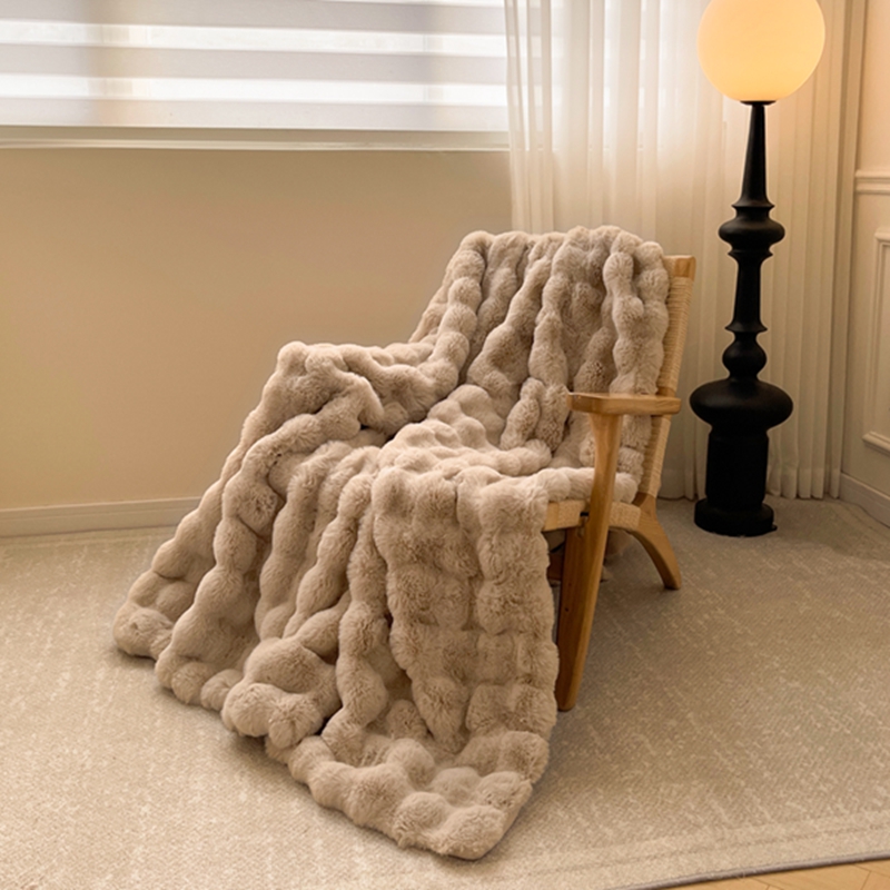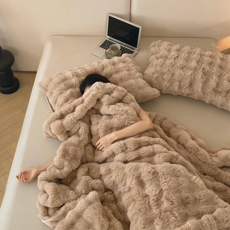 商品名称:寐眠 2024新款托斯卡纳兔毛绒加厚双层毯 浅驼
