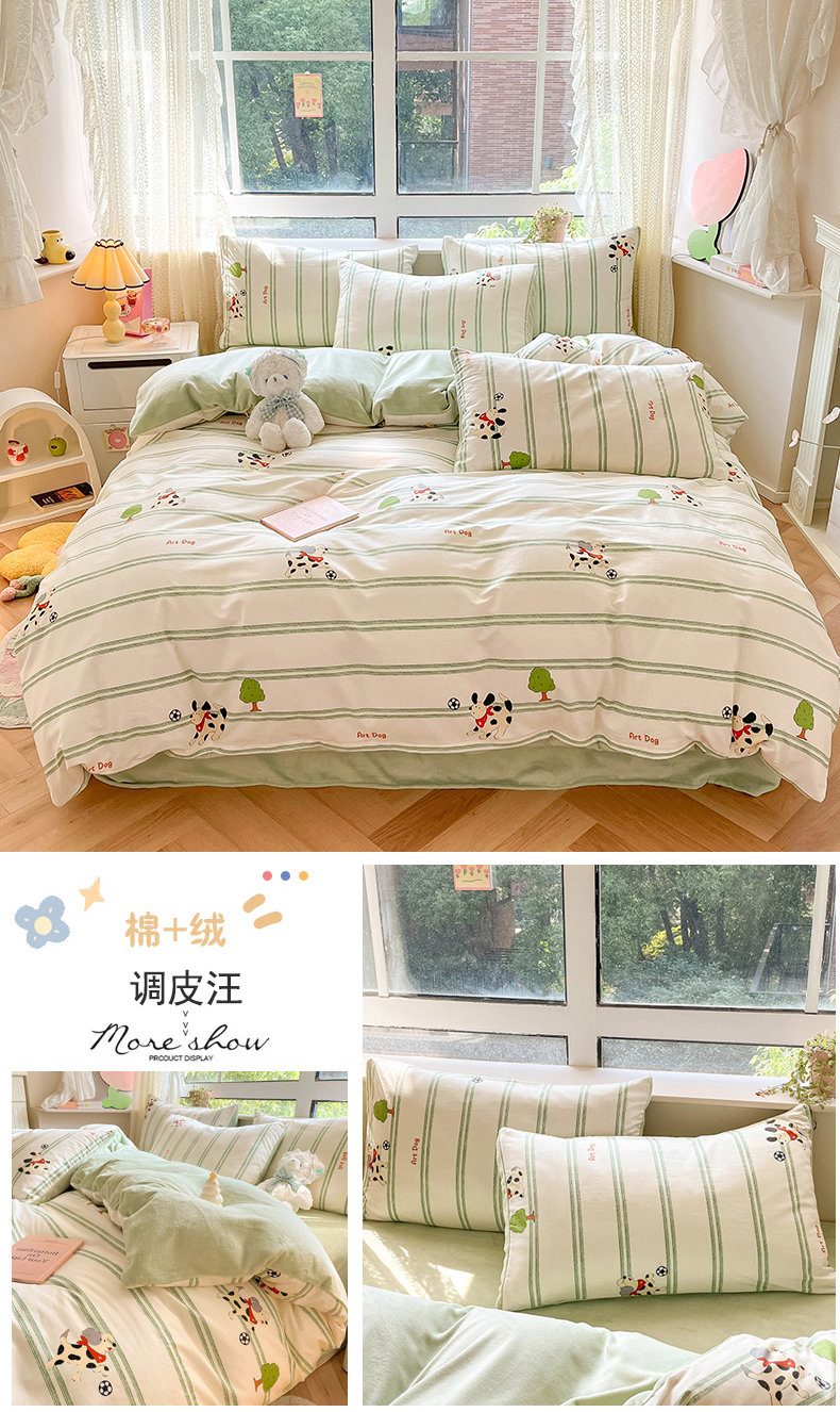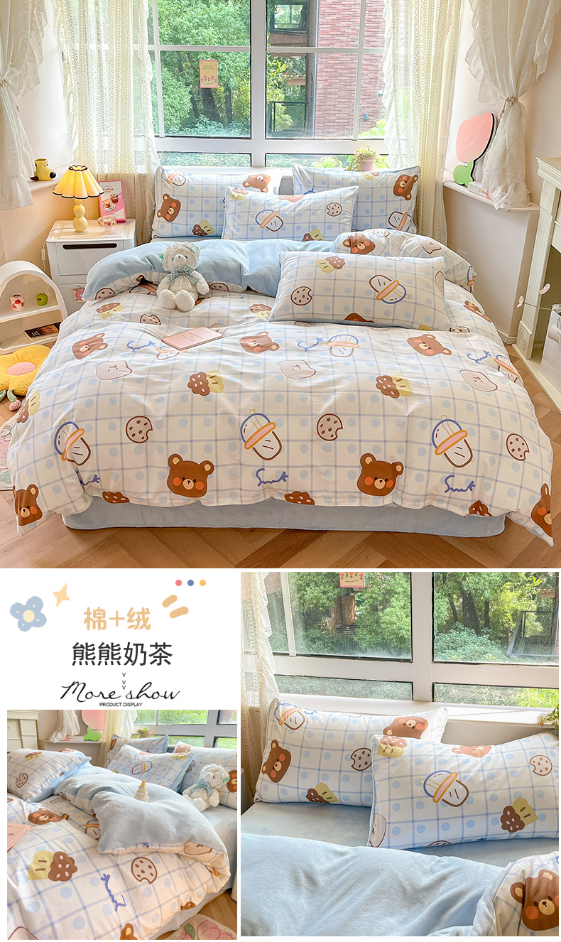(总)麦伦家居 2025秋冬新品多功能床品全棉+豆豆绒四件套卡通小清新系列,迪迪龙,好友鸭,花韵抹茶,浣花,杰克熊,乐园小马,清茶小熊,童趣米,星星小象蓝,云朵腊肠狗,粉色玫瑰,可爱小兔-米黄,木马小熊蓝,拾趣爱宠,星星木马