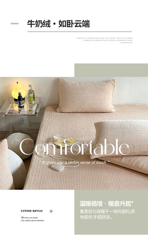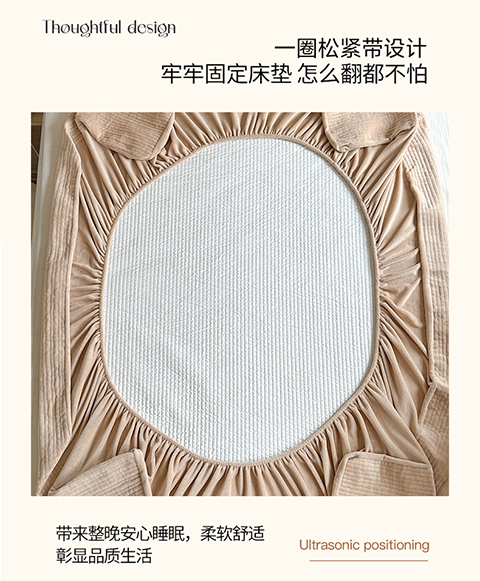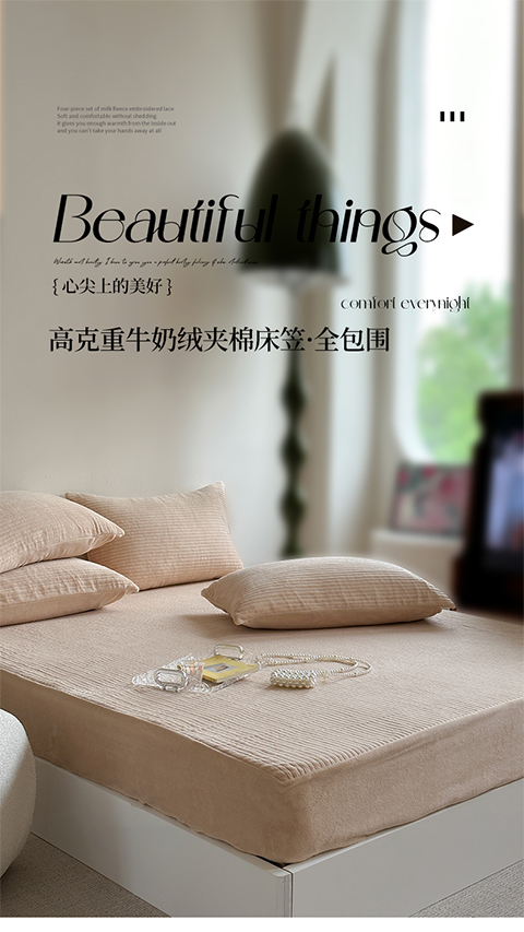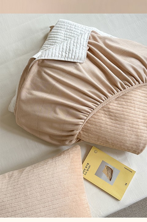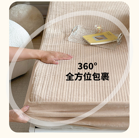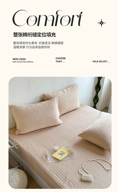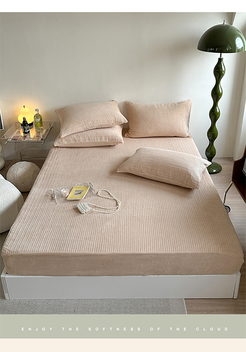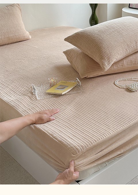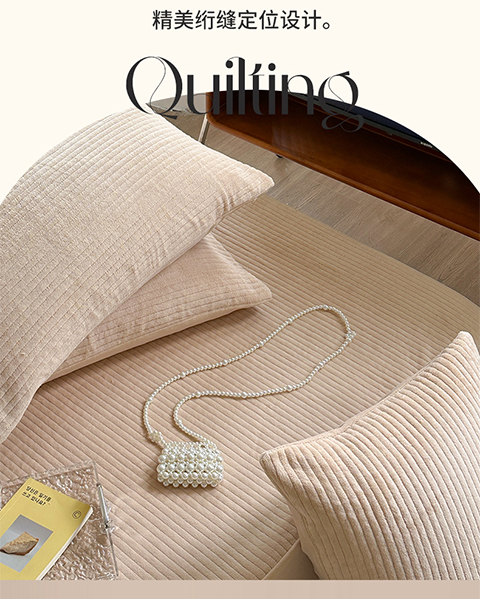 商品名称:漫调 2023新款直条绗缝牛奶绒纯色夹棉床笠 香槟杏