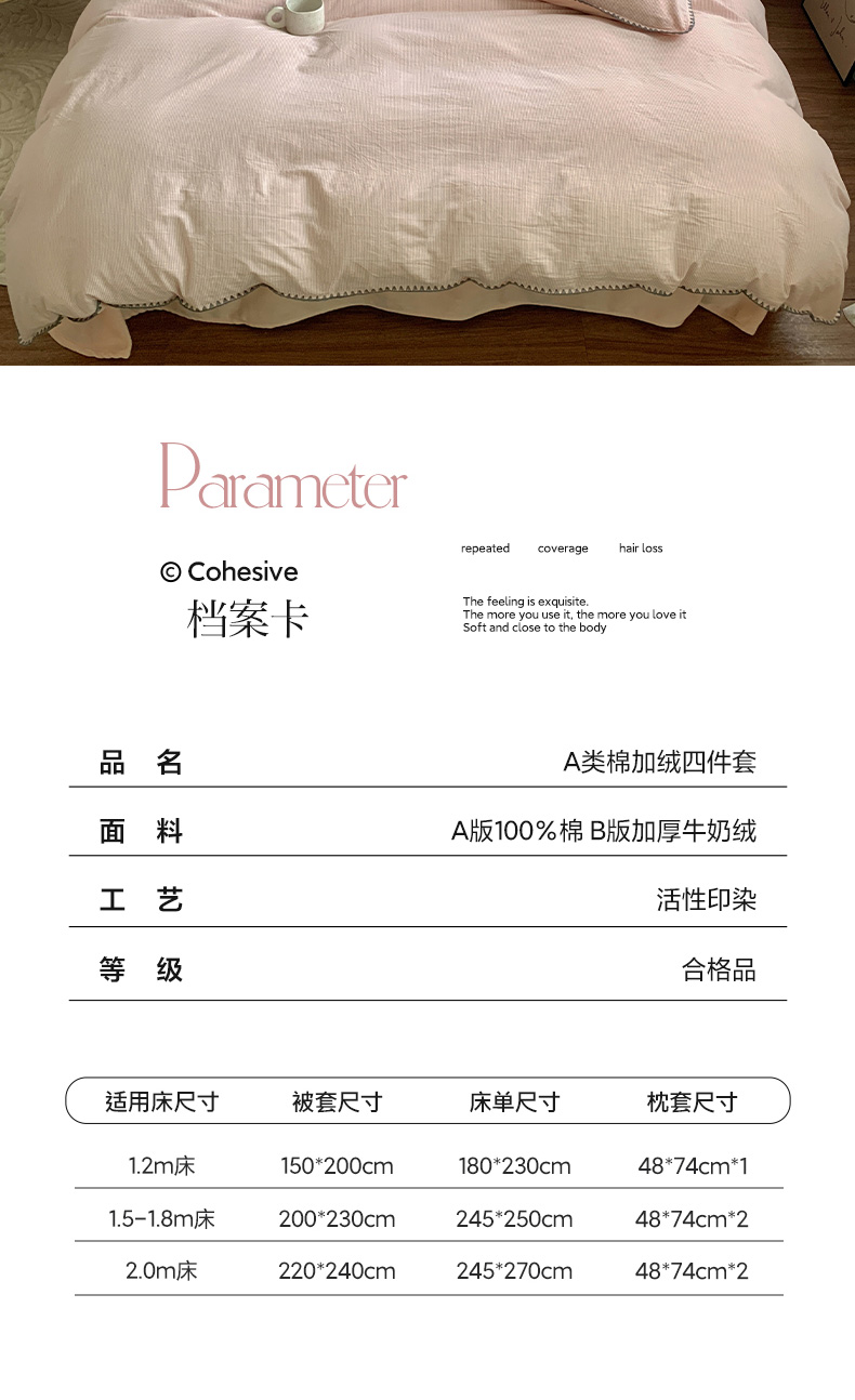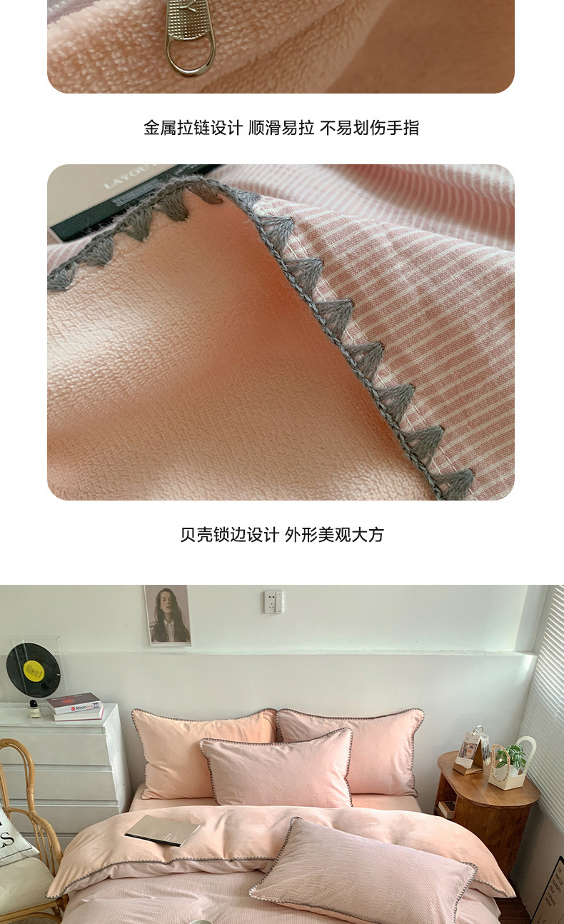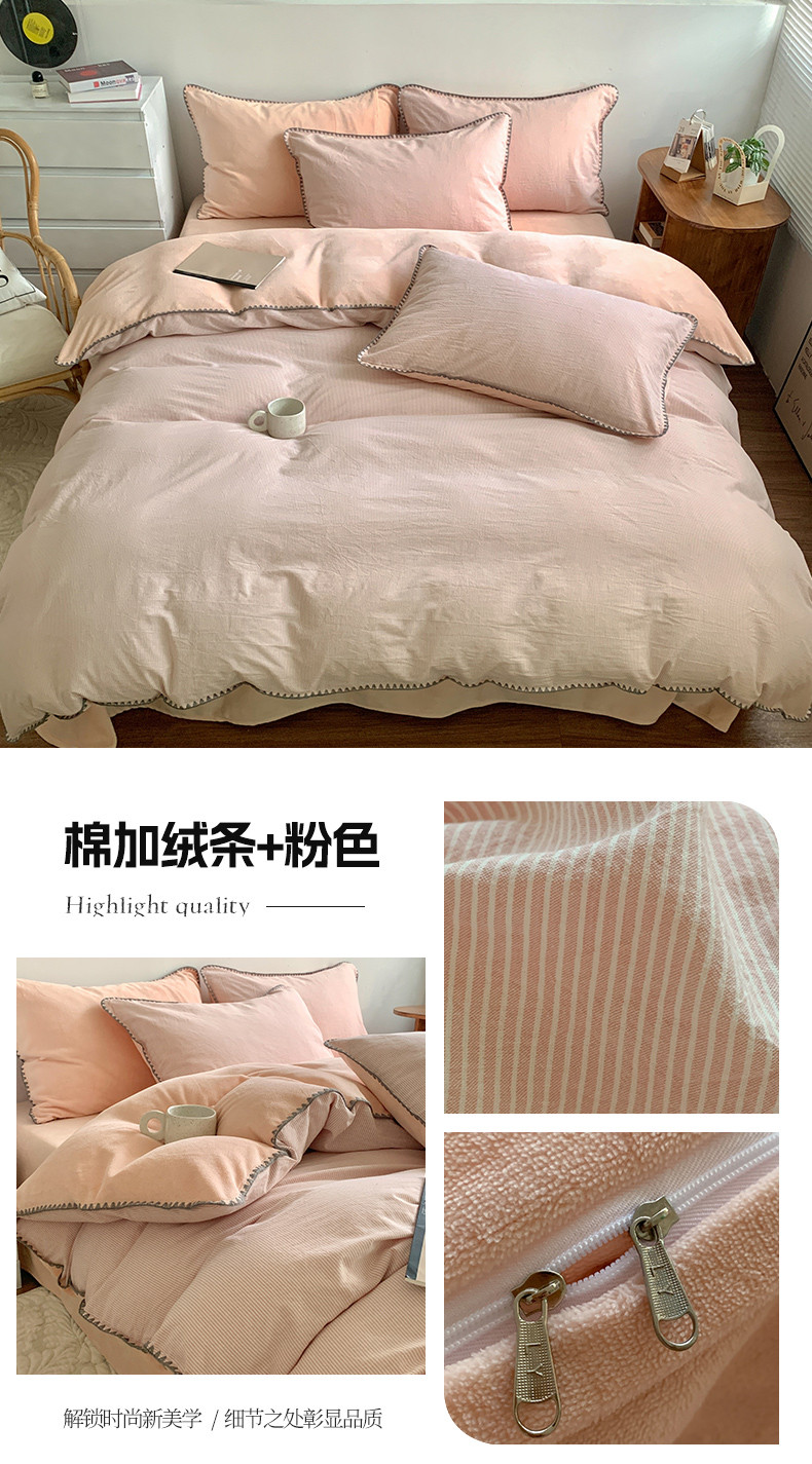 商品名称:莱茵家居 2023新款AB版加厚款棉加绒四件套 棉加绒条+粉色