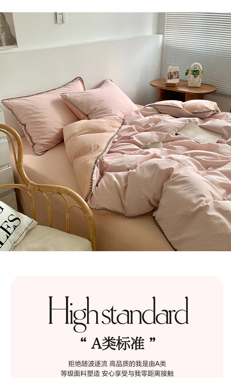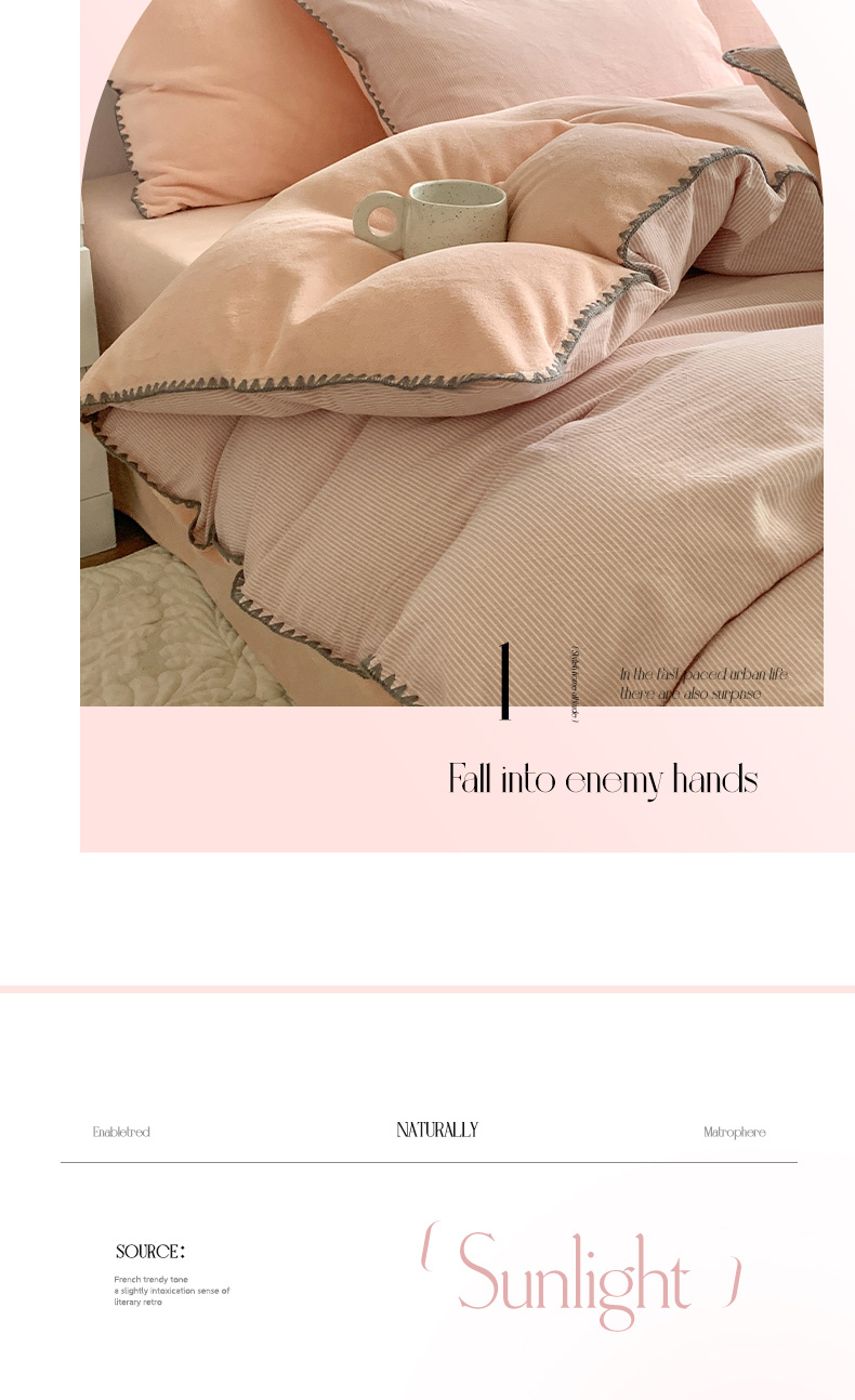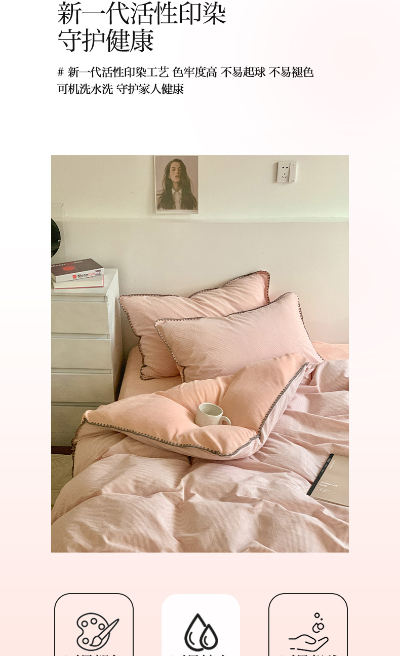 商品名称:莱茵家居 2023新款AB版加厚款棉加绒四件套 棉加绒条+粉色