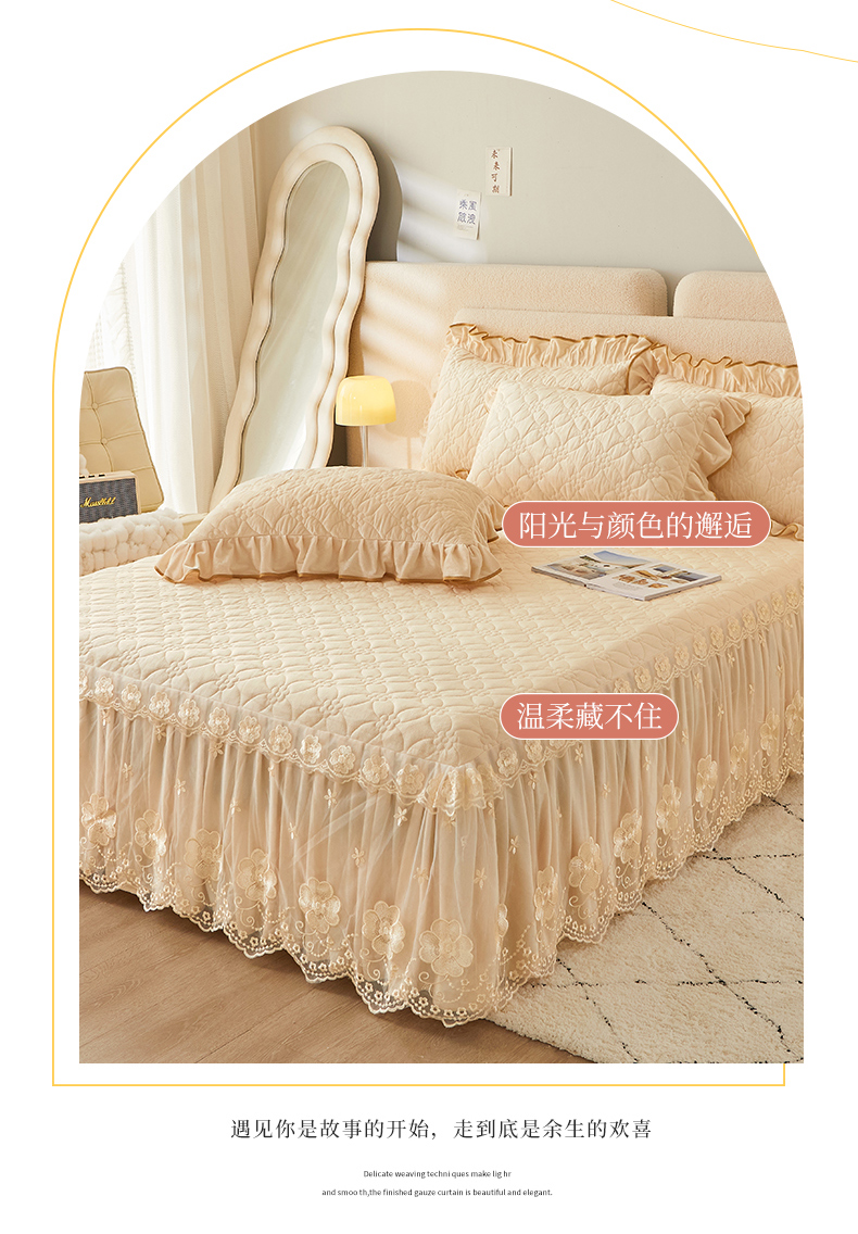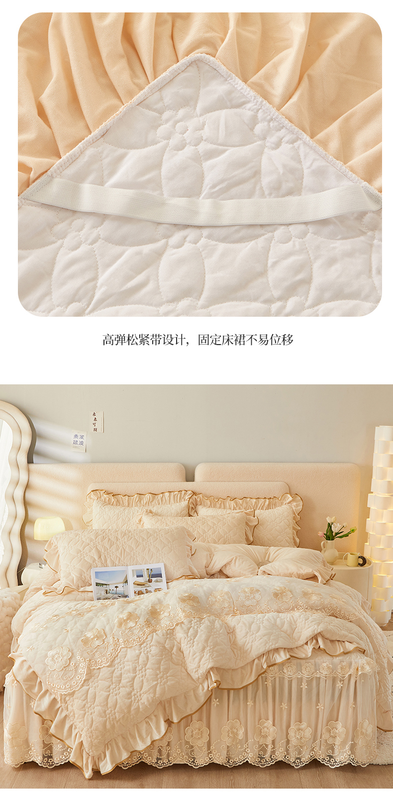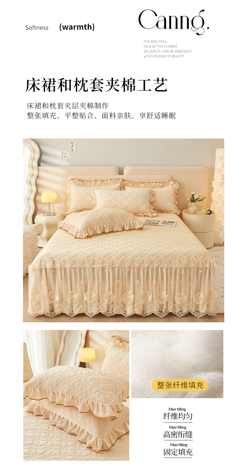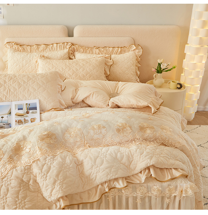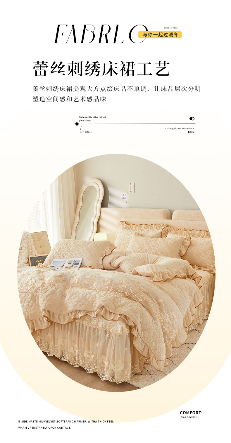 当前位置: 91家纺网 > 商品网购 > 床品套件 > 四件套 > 全棉普通四件套 > 罗艺轩 2024秋冬新款水晶绒花样年华全夹棉加厚床裙四件套 花样年华-米黄