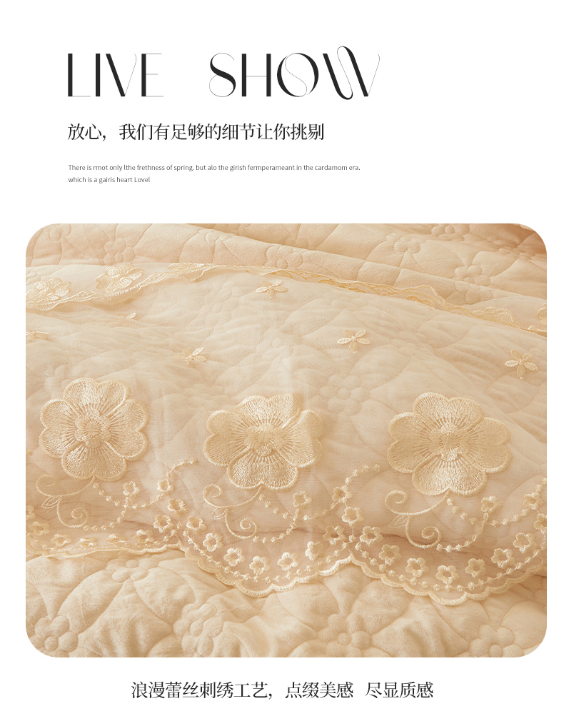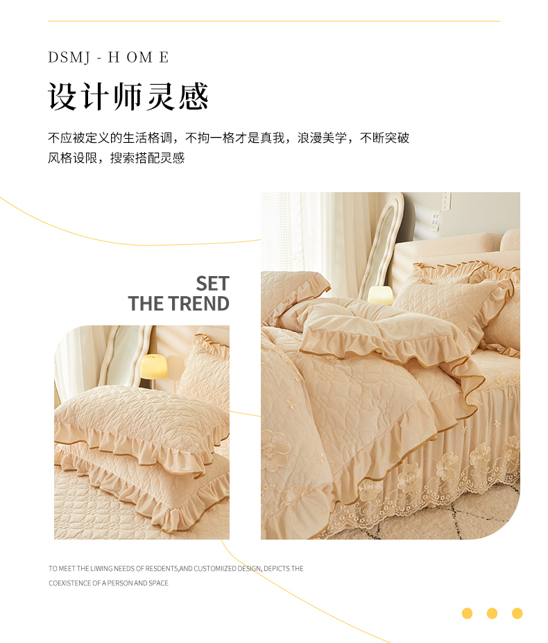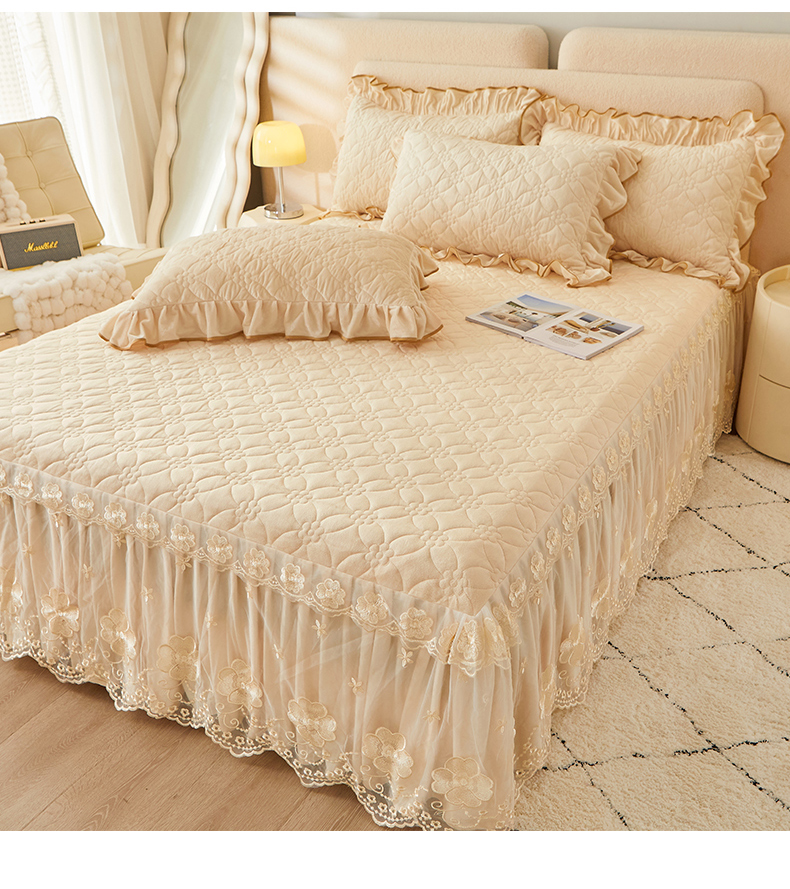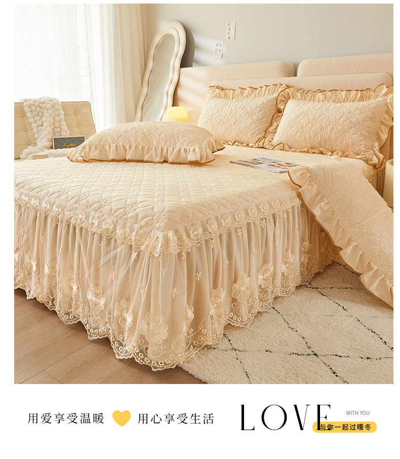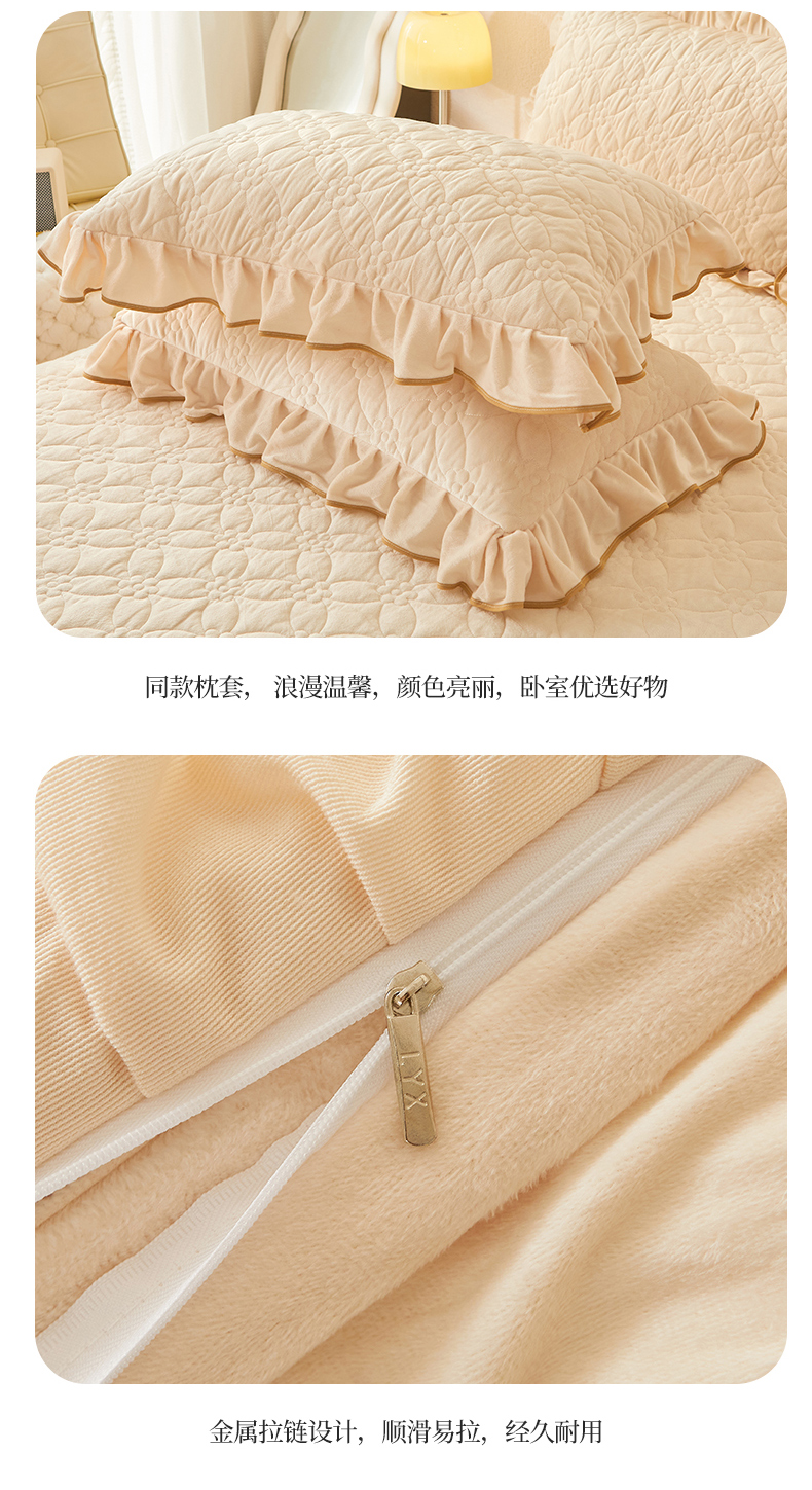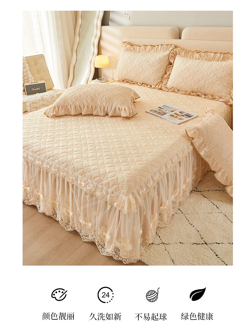 当前位置: 91家纺网 > 商品网购 > 床品套件 > 四件套 > 全棉普通四件套 > 罗艺轩 2024秋冬新款水晶绒花样年华全夹棉加厚床裙四件套 花样年华-米黄