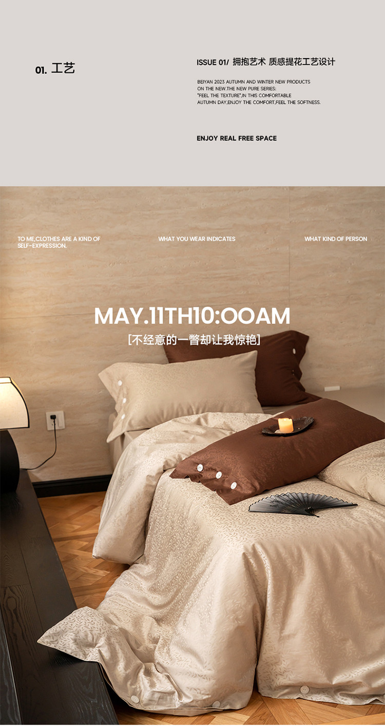 (总) 华超针织 2022新款60支肌理浮雕亲柔纱四件套,布莱垦棕绑带款,可可淡奶绑带款,摩洛哥灰绑带款,塞纳河咖绑带款,布莱垦棕纽扣款,可可淡奶纽扣款,摩洛哥灰纽扣款,塞纳河咖纽扣款