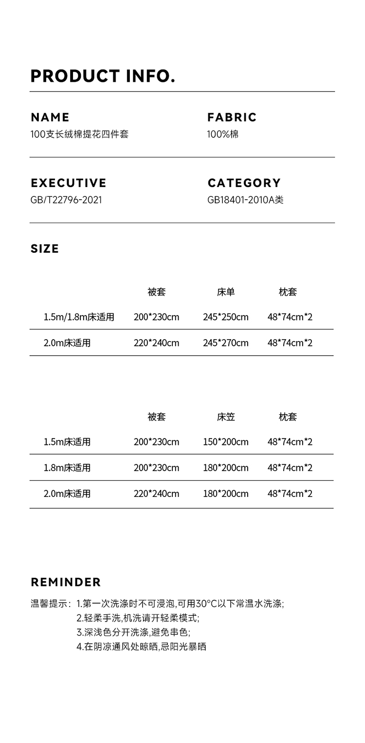 商品名称:(总)华超针织 2023新款100支长绒棉提花四件套(竹影系列)