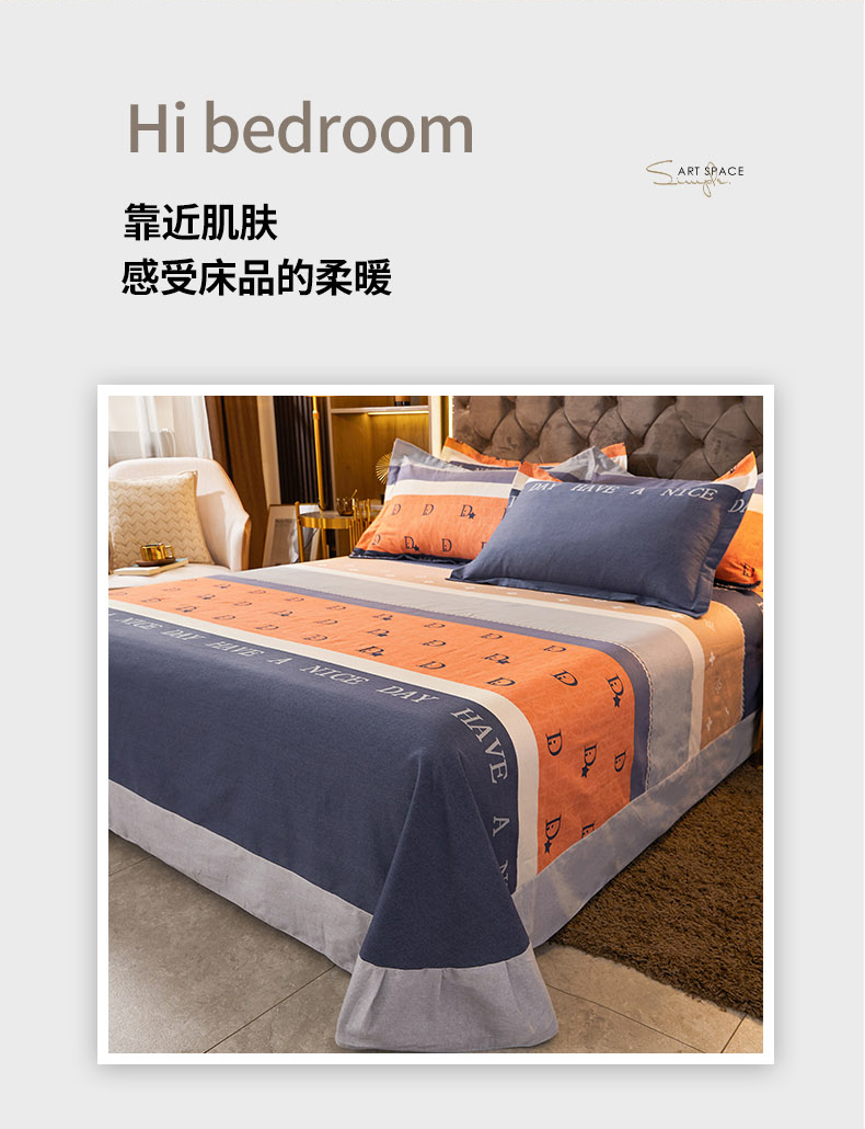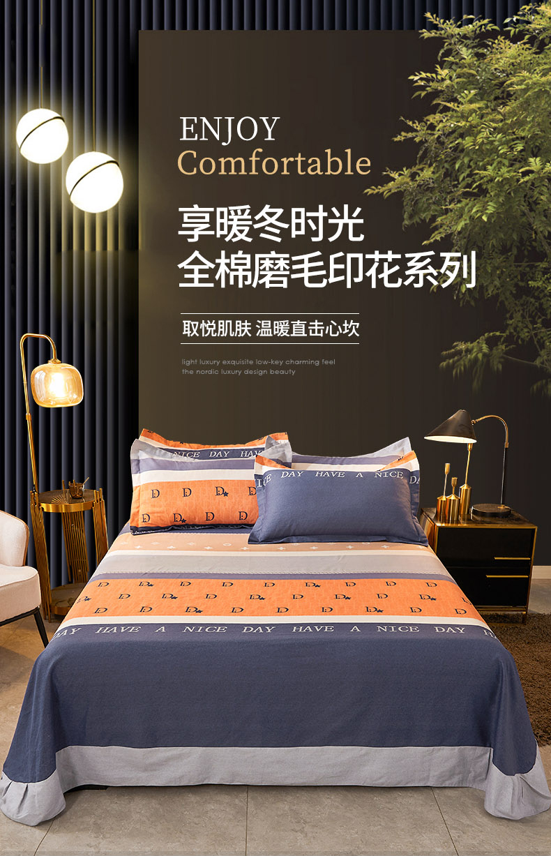 • 91家纺网 家纺一手货源 找家纺 伊而梦 2023新款全棉磨毛印花四件套系列单品床单 时尚大牌-桔