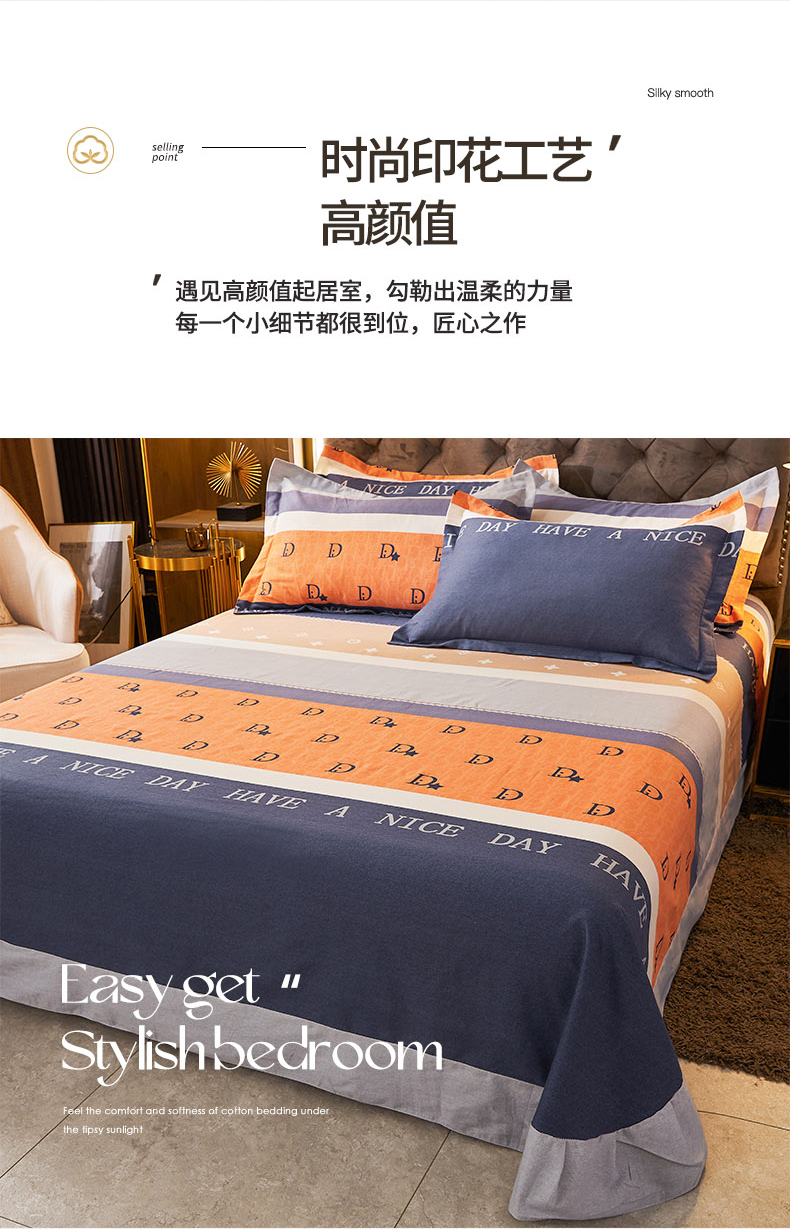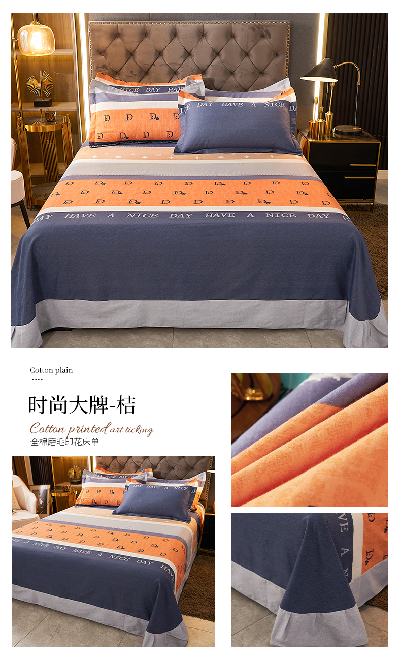伊而梦 2023新款全棉磨毛印花四件套系列单品床单 时尚大牌-桔