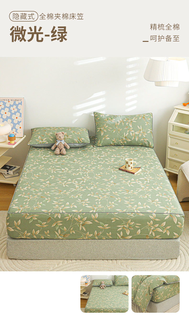 商品名称:元元 2024新款13372加密精梳全棉单品套件系列-单床笠 微光-绿