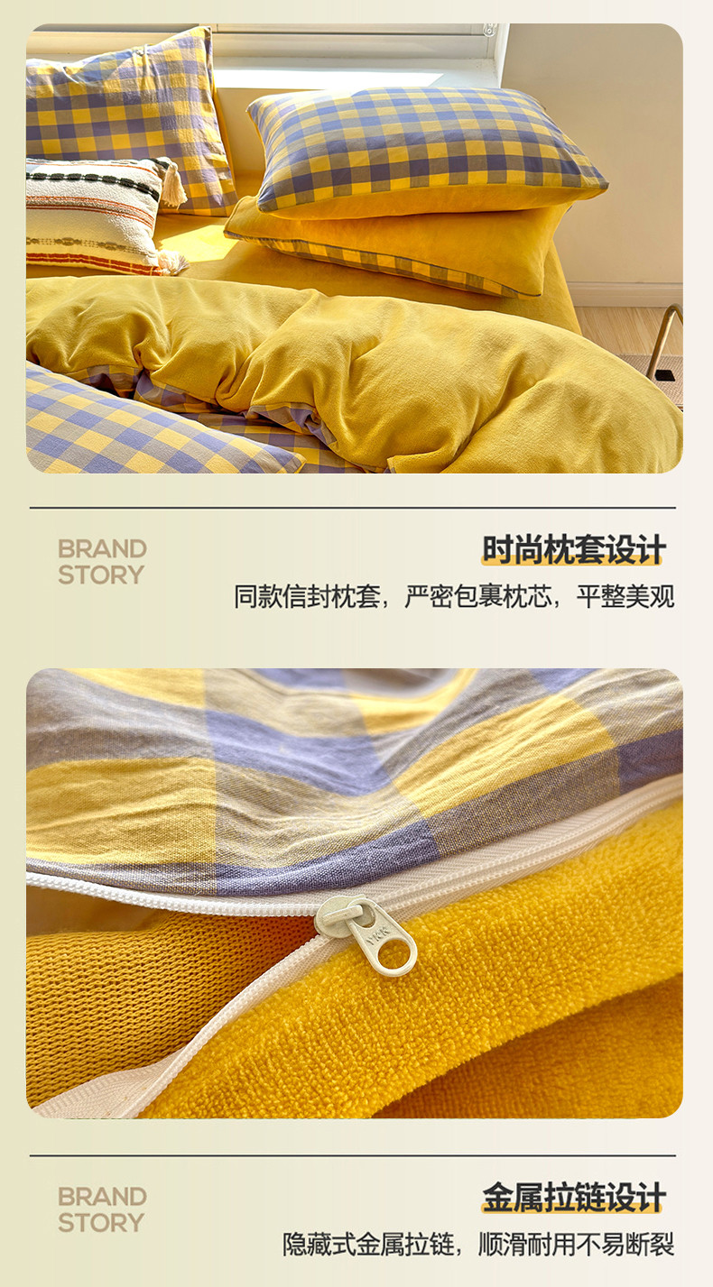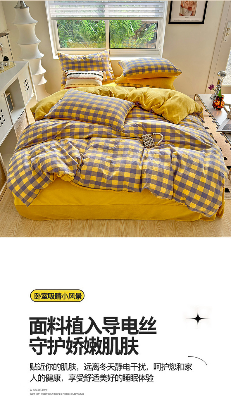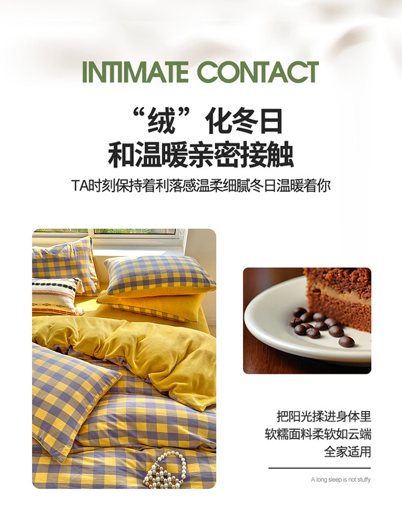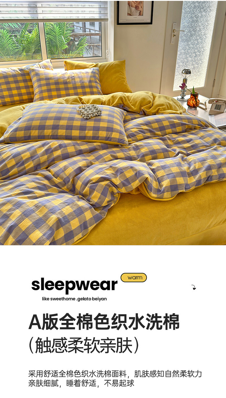 当前位置: 91家纺网 > 商品网购 > 床品套件 > 四件套 > 牛奶绒四件套 > 三沁 2023新款全棉水洗棉加绒四件套 棉绒-紫黄中格