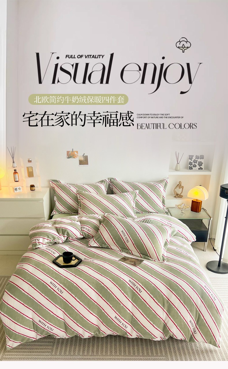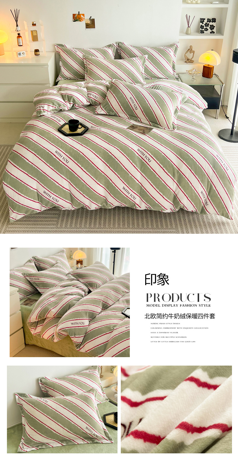 当前位置: 91家纺网 > 商品网购 > 床品套件 > 四件套 > 牛奶绒四件套 > 寐居 2023新款北欧简约款牛奶绒四件套 印象