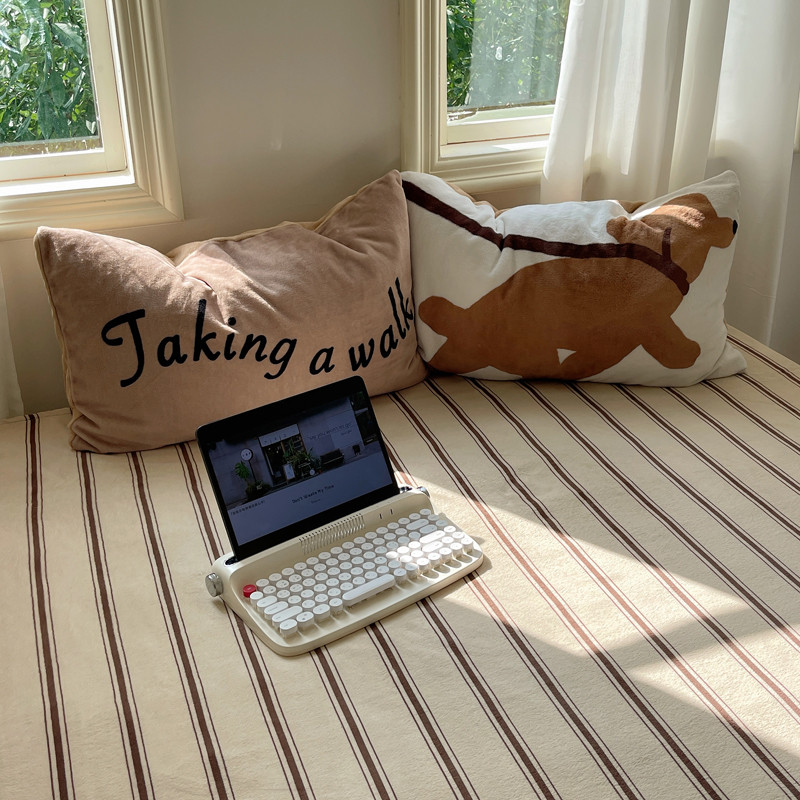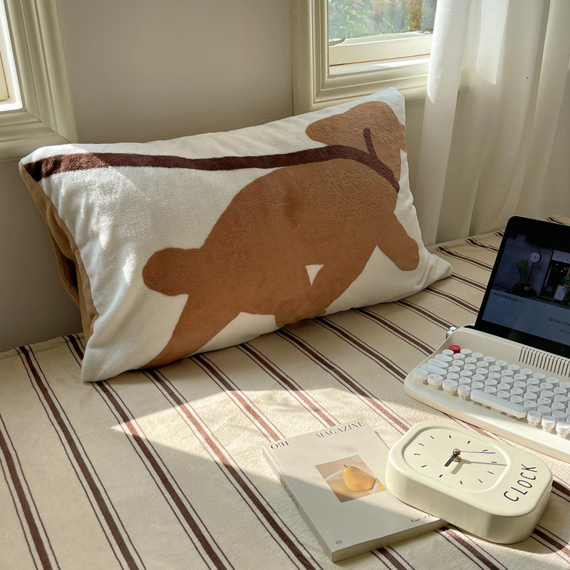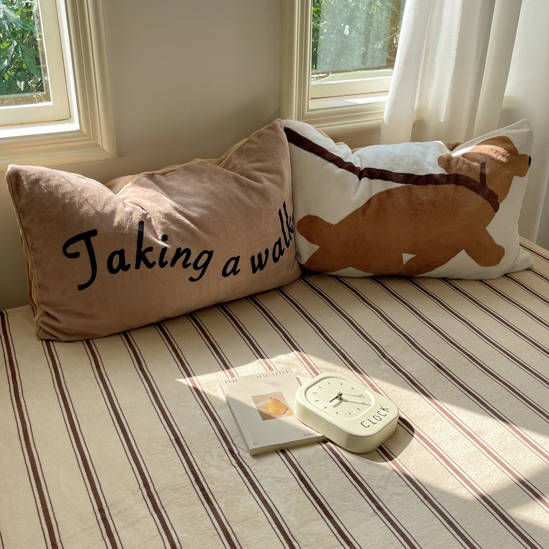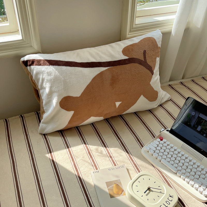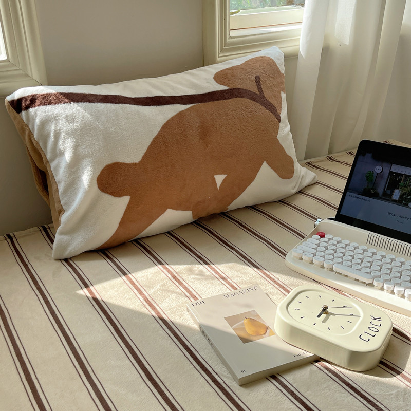 (总)桃喜 2025新款牛奶绒线条系列四件套 【会员-5】,黑白小狗,咖色线条狗勾