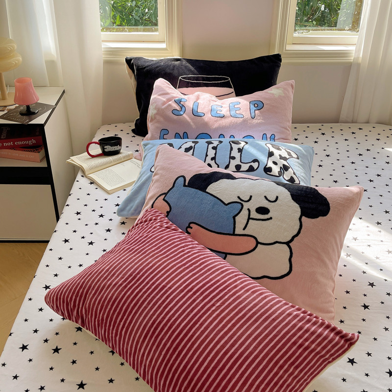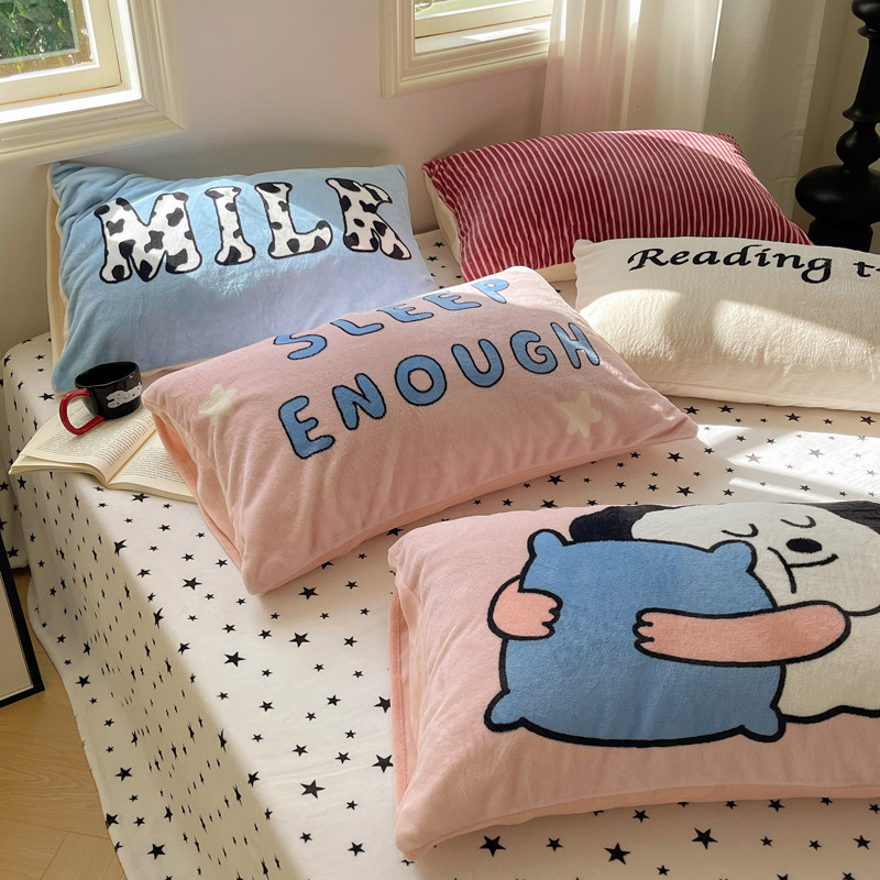 商品名称:(总)桃喜 2024新款牛奶绒卡通数码印花绣标单品枕套
