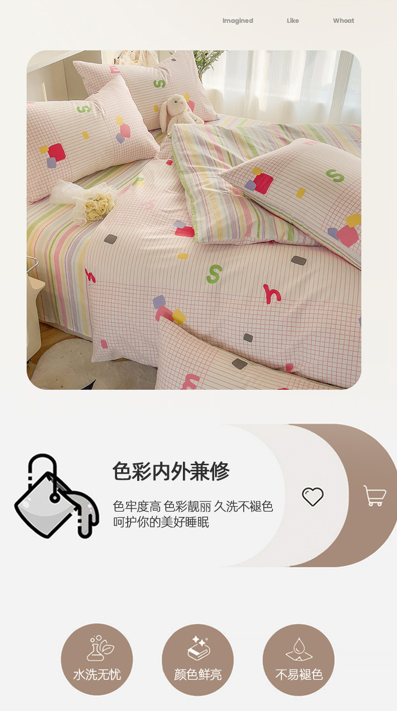 商品名称:简宜家居 2025新款40支13070纯棉卡通系列四件套 多彩空间