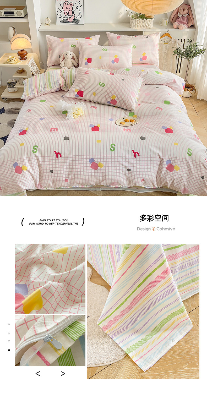 简宜家居 2025新款40支13070纯棉卡通系列四件套 多彩空间