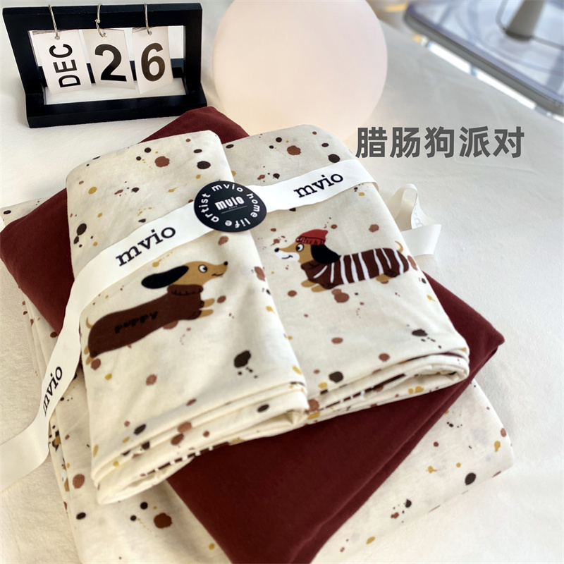 当前位置: 91家纺网 > 商品网购 > 床品套件 > 四件套 > 针织棉四件套 > 荣轩家居 2023新款全棉针织棉套件 腊肠狗派对