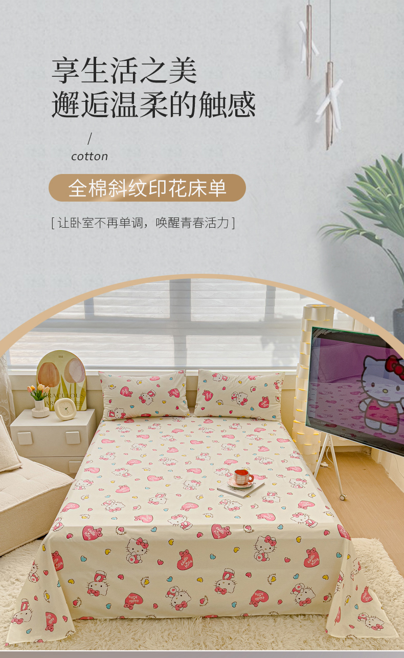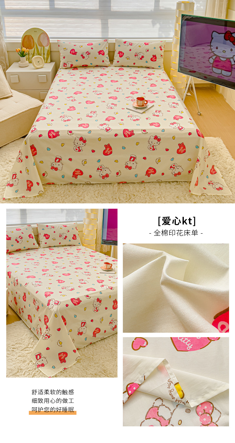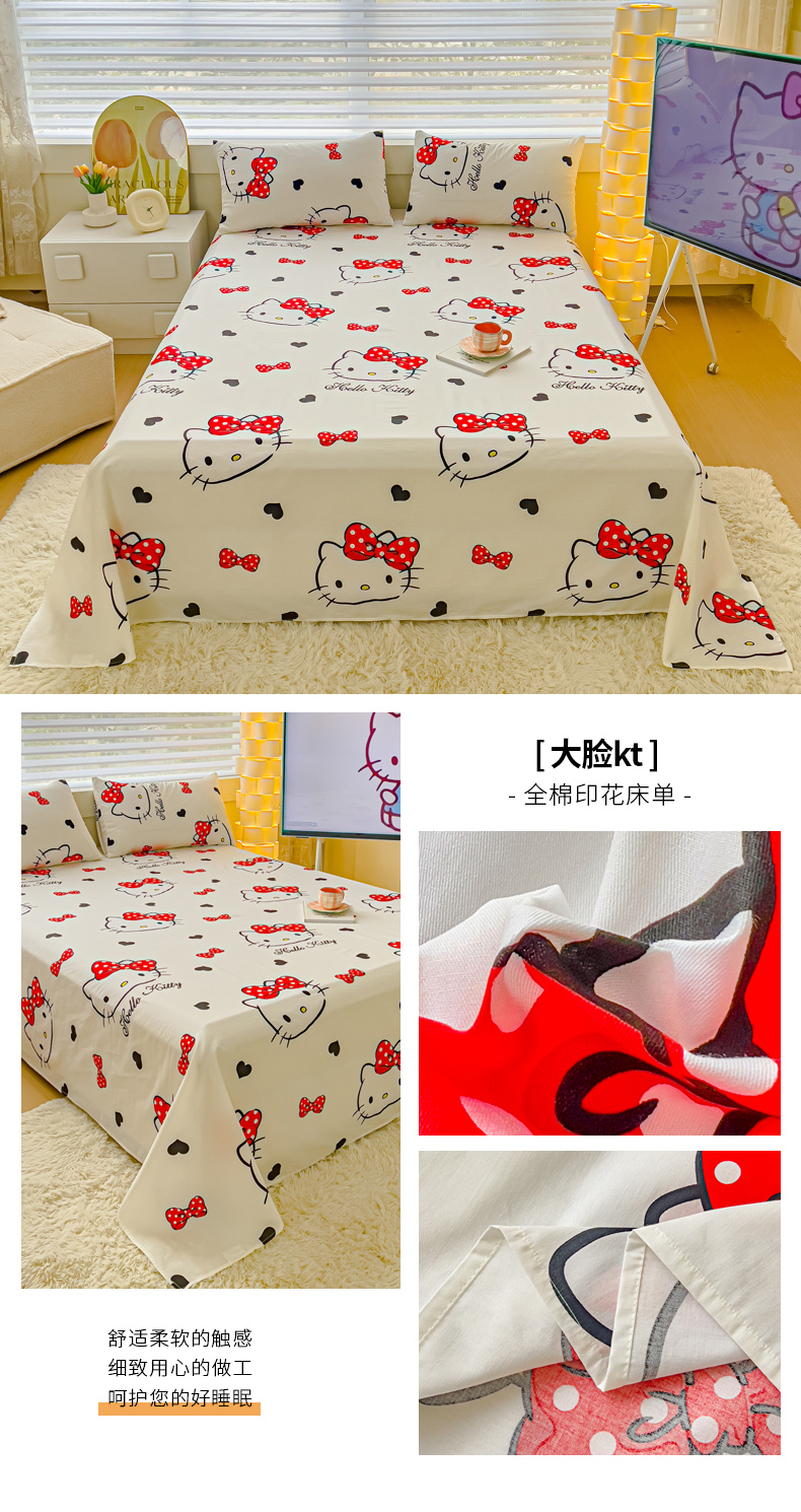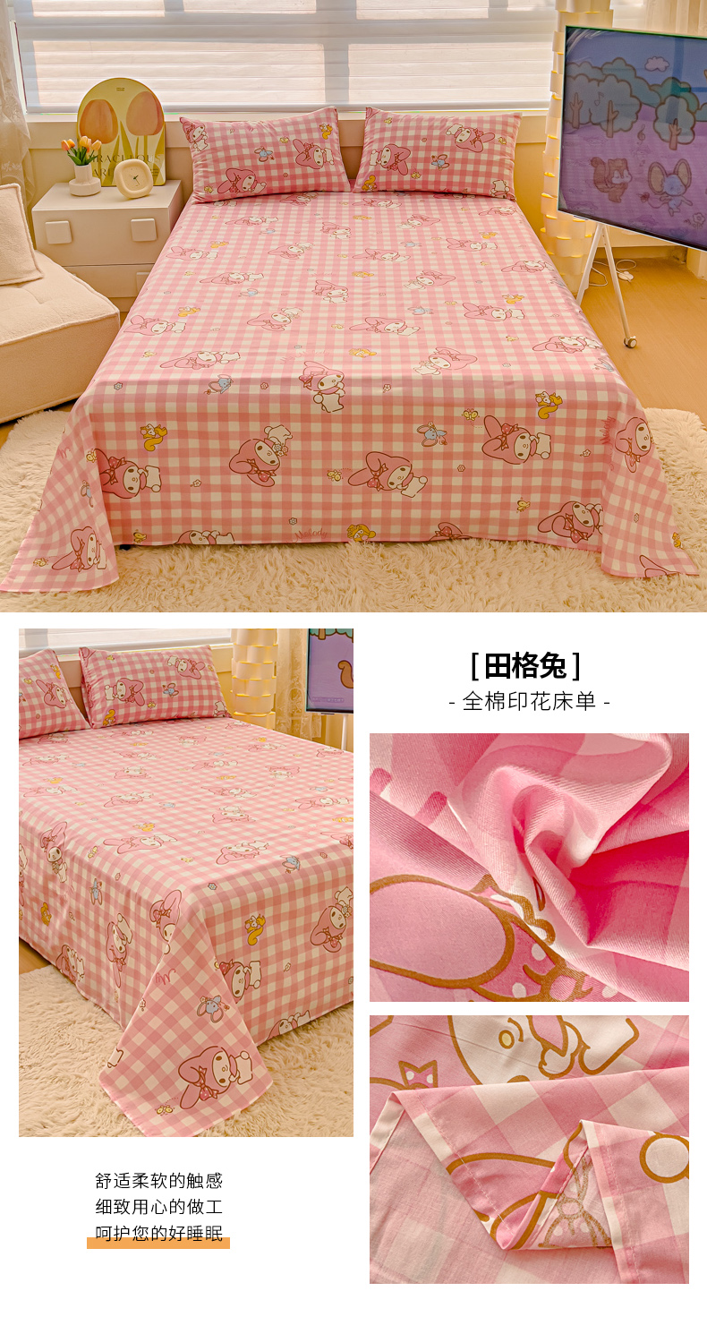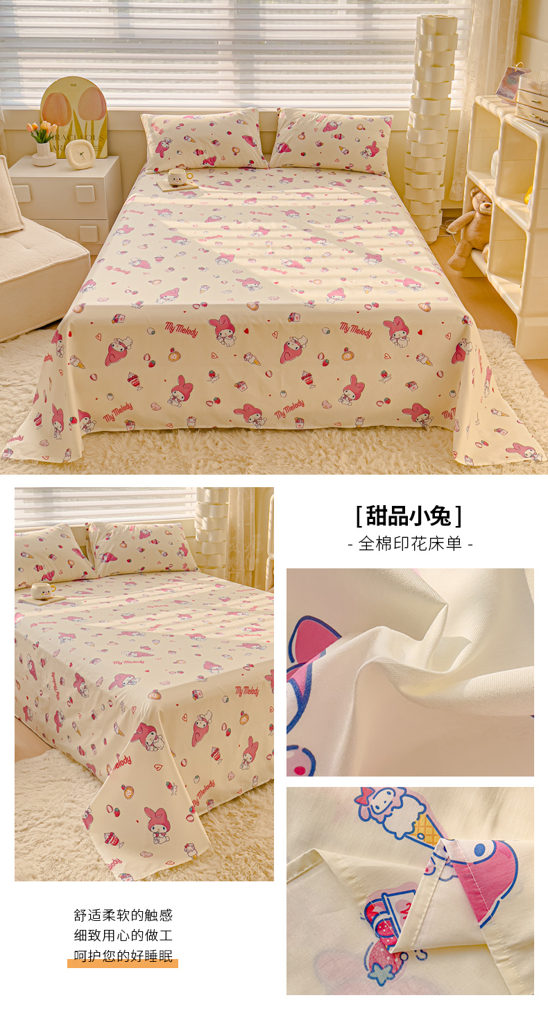 (总)金丝鸟家纺 2025新款三丽鸥系列全棉斜纹13370单品床单,波点美乐蒂,彩虹大耳朵狗,条纹库洛米,晚安kt