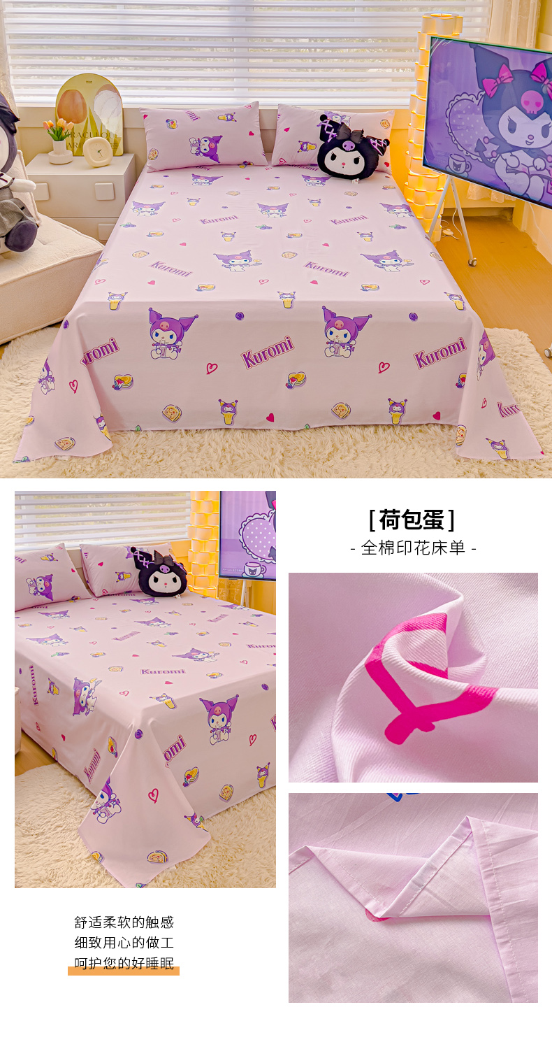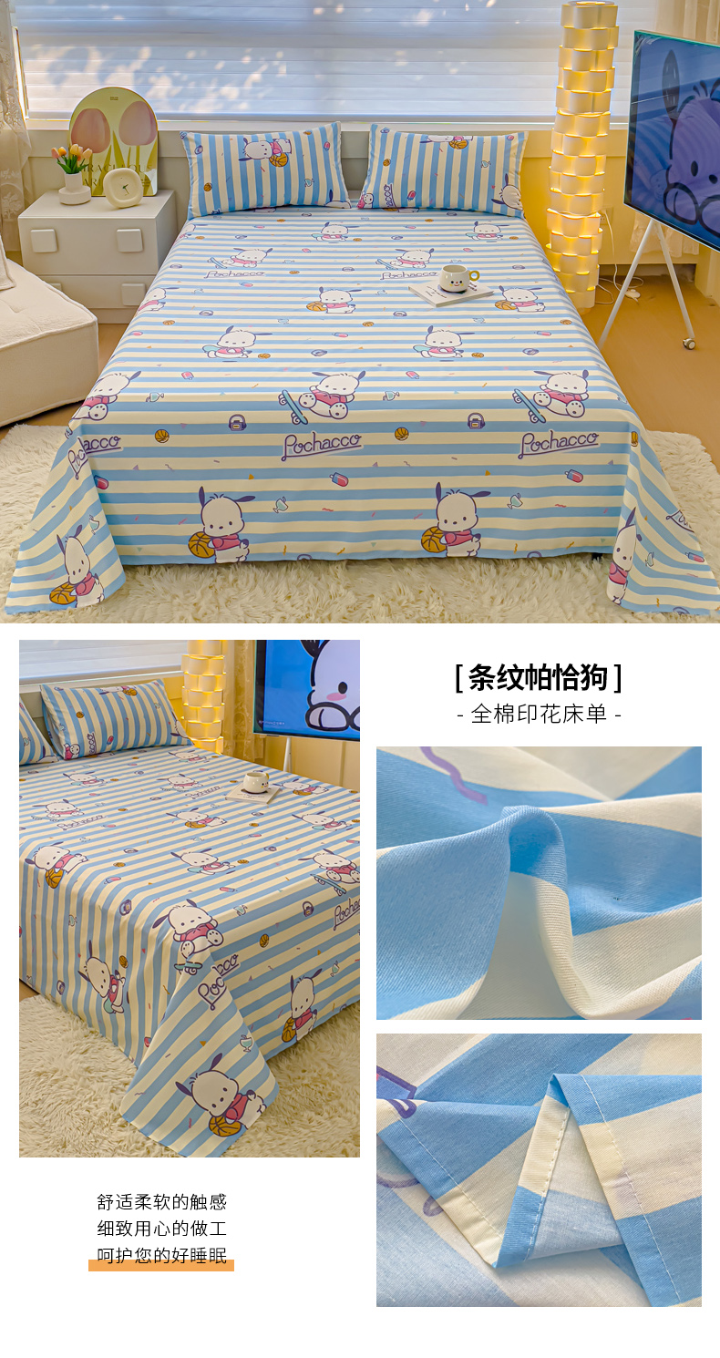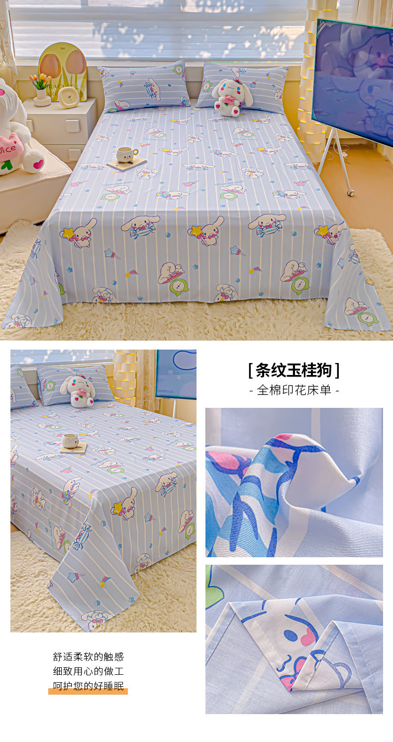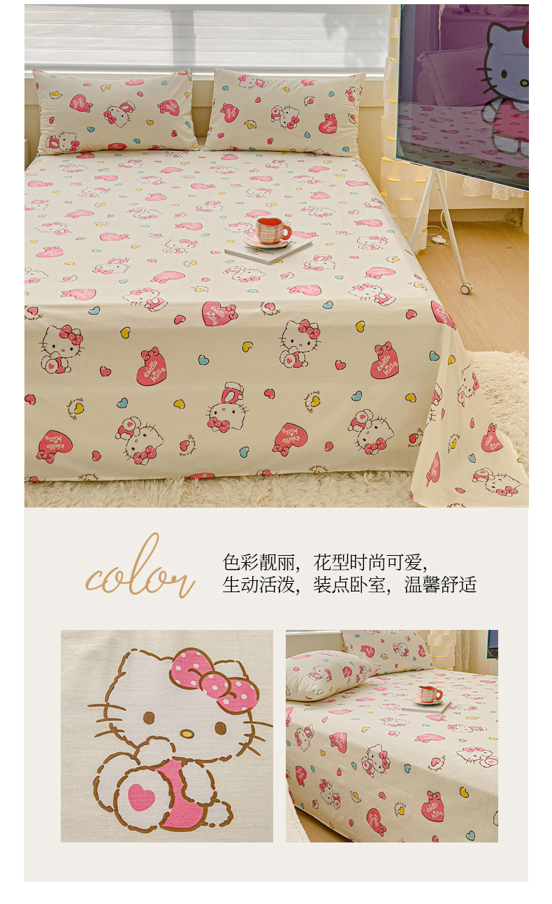 (总)金丝鸟家纺 2025新款三丽鸥系列全棉斜纹13370单品床单,波点美乐蒂,彩虹大耳朵狗,条纹库洛米,晚安kt