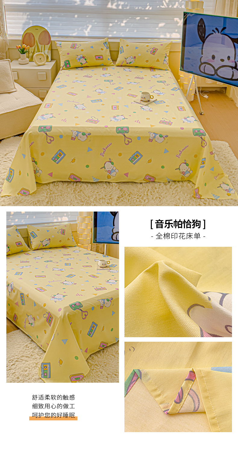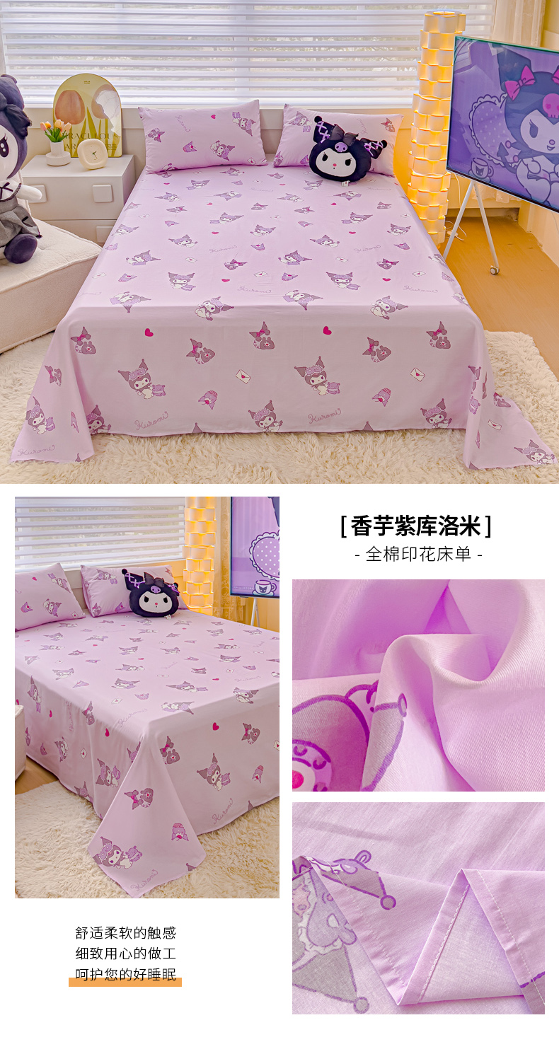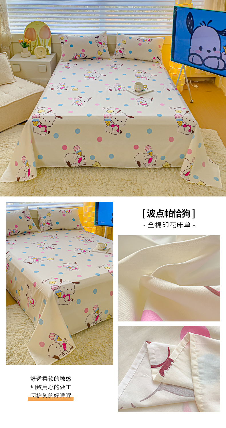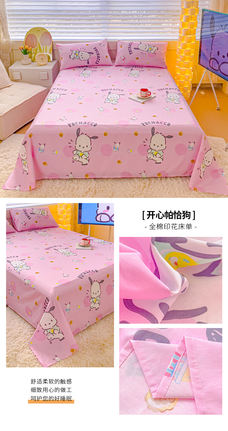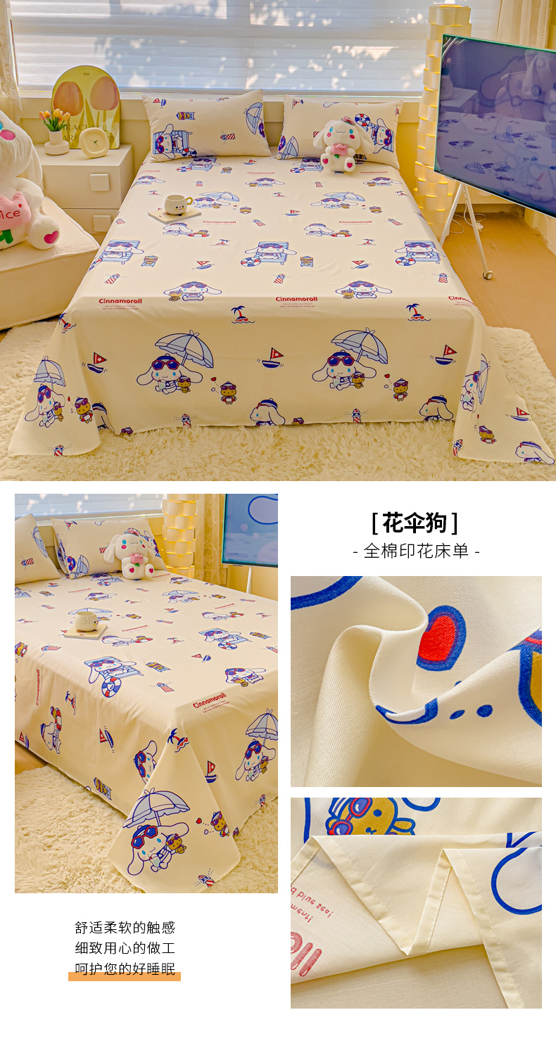 (总)金丝鸟家纺 2025新款三丽鸥系列全棉斜纹13370单品床单,波点美乐蒂,彩虹大耳朵狗,条纹库洛米,晚安kt