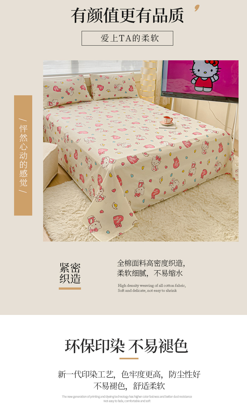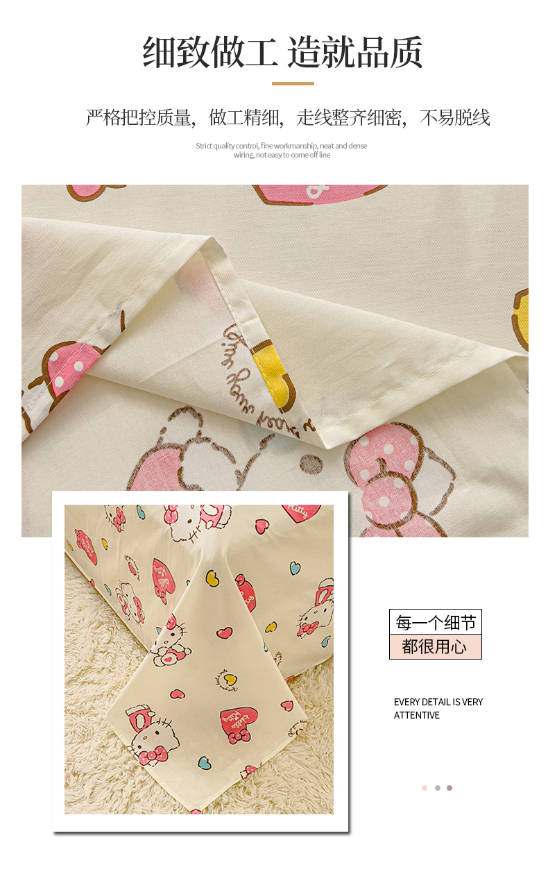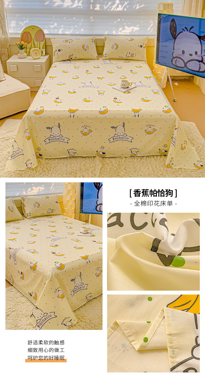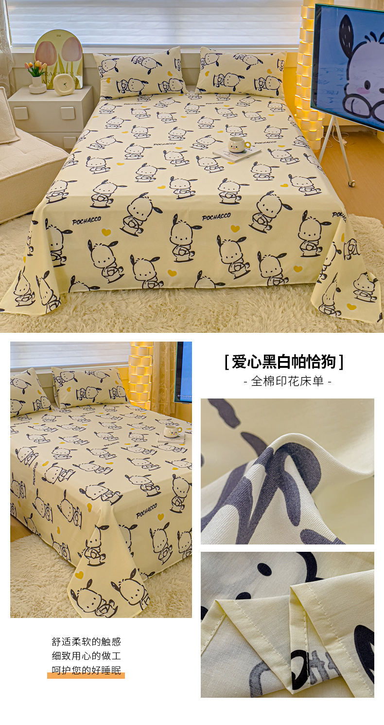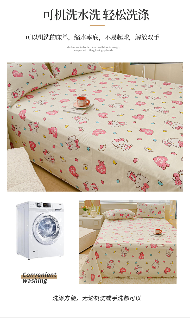 (总)金丝鸟家纺 2025新款三丽鸥系列全棉斜纹13370单品床单,波点美乐蒂,彩虹大耳朵狗,条纹库洛米,晚安kt