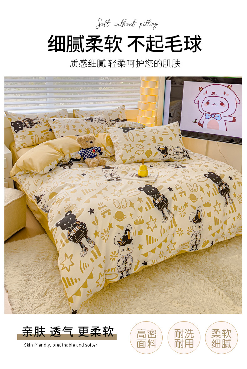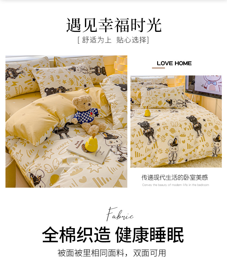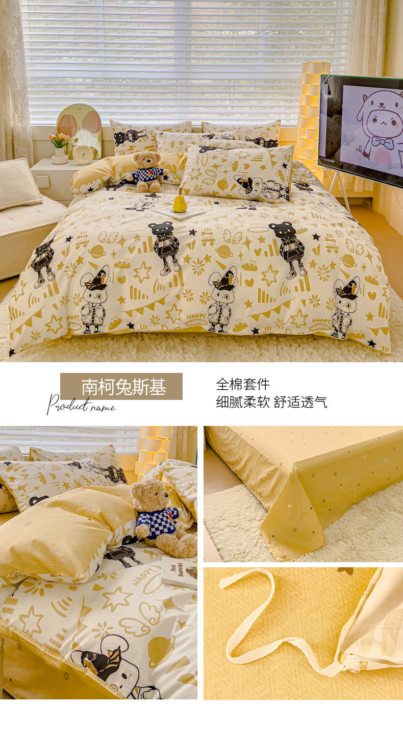 当前位置: 91家纺网 > 商品网购 > 床品套件 > 四件套 > 全棉普通四件套 > 金丝鸟 2024新款全棉可爱卡通四件套 南柯兔斯基