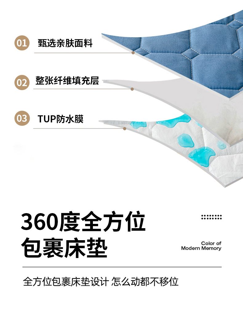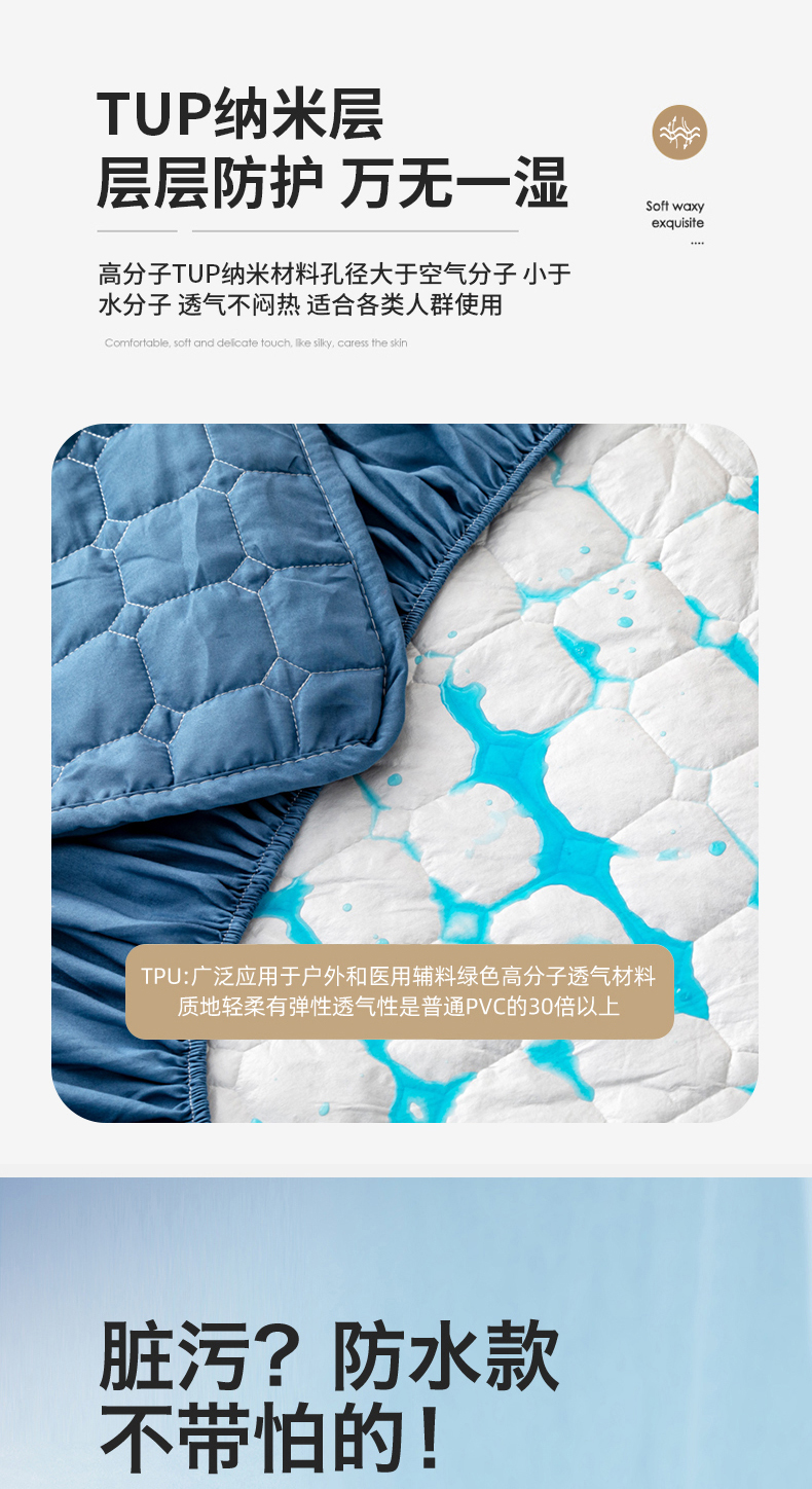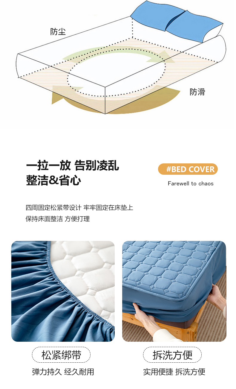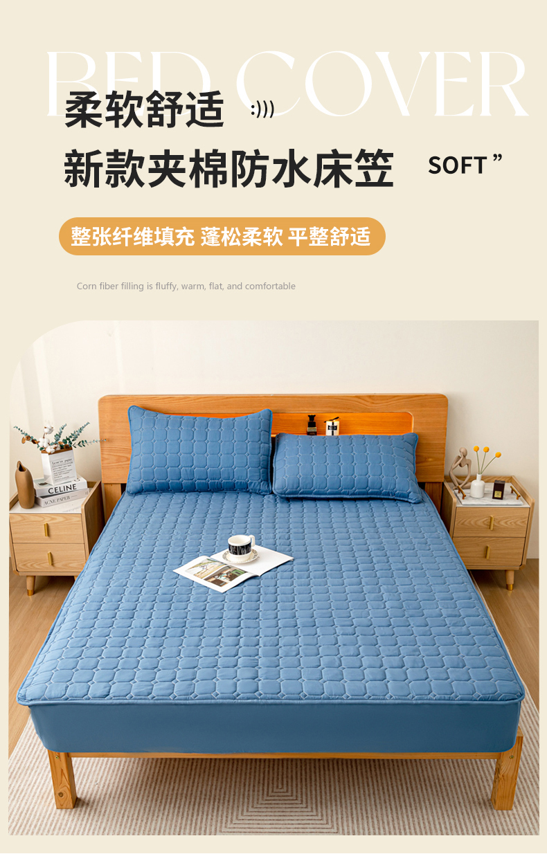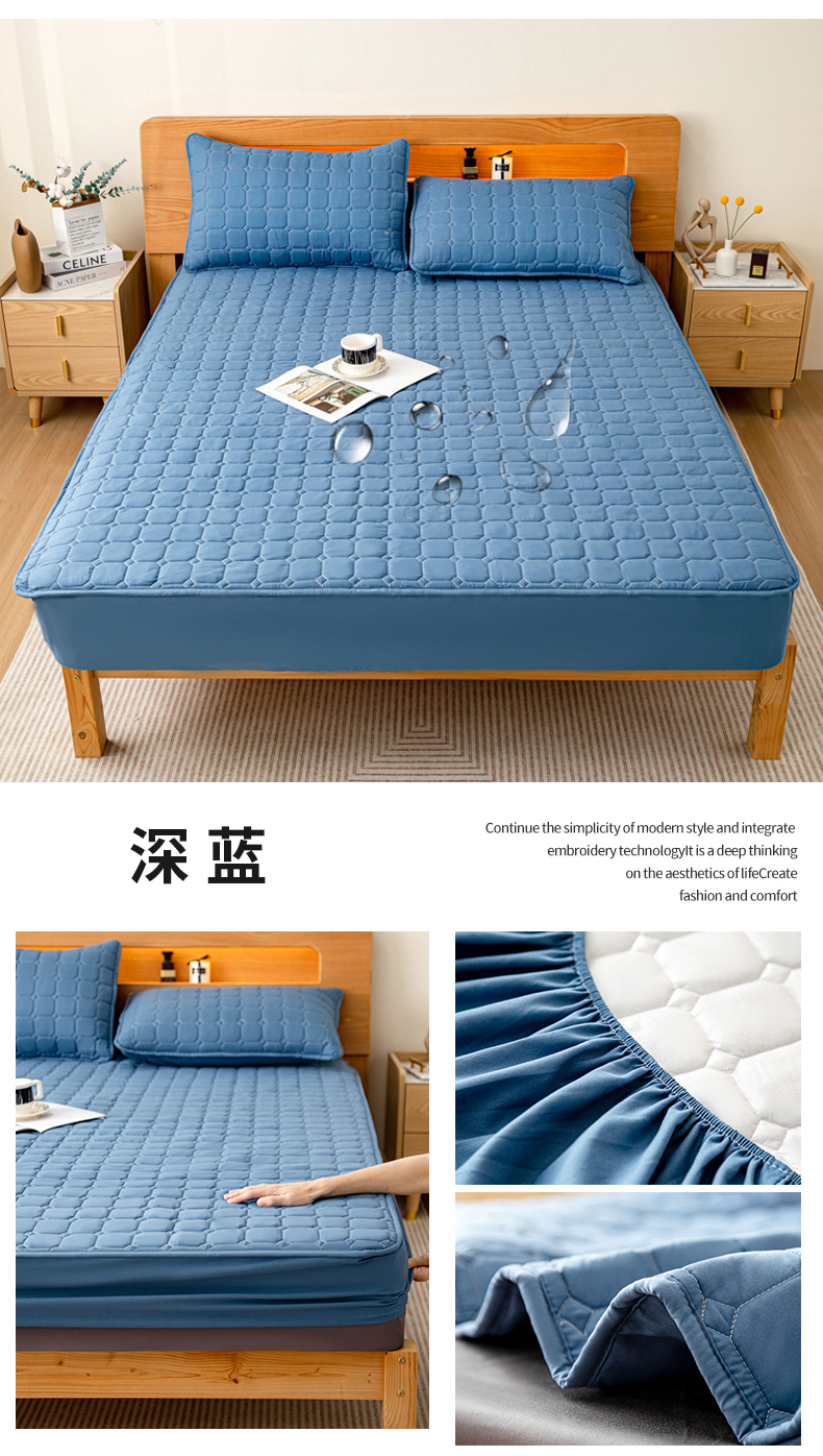 商品名称:宇淳国际 2024新款夹棉防水床笠 深蓝