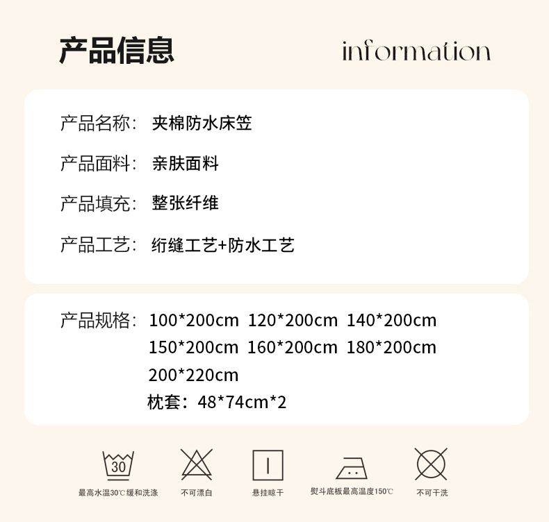 150*200cm防水夹棉单床笠