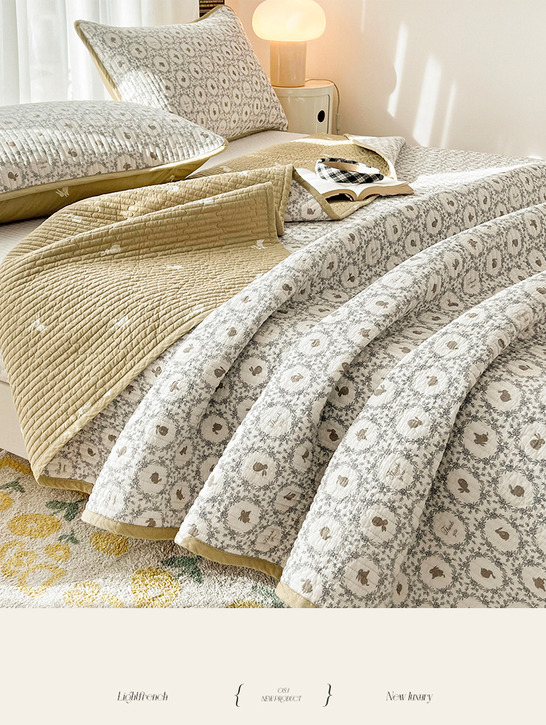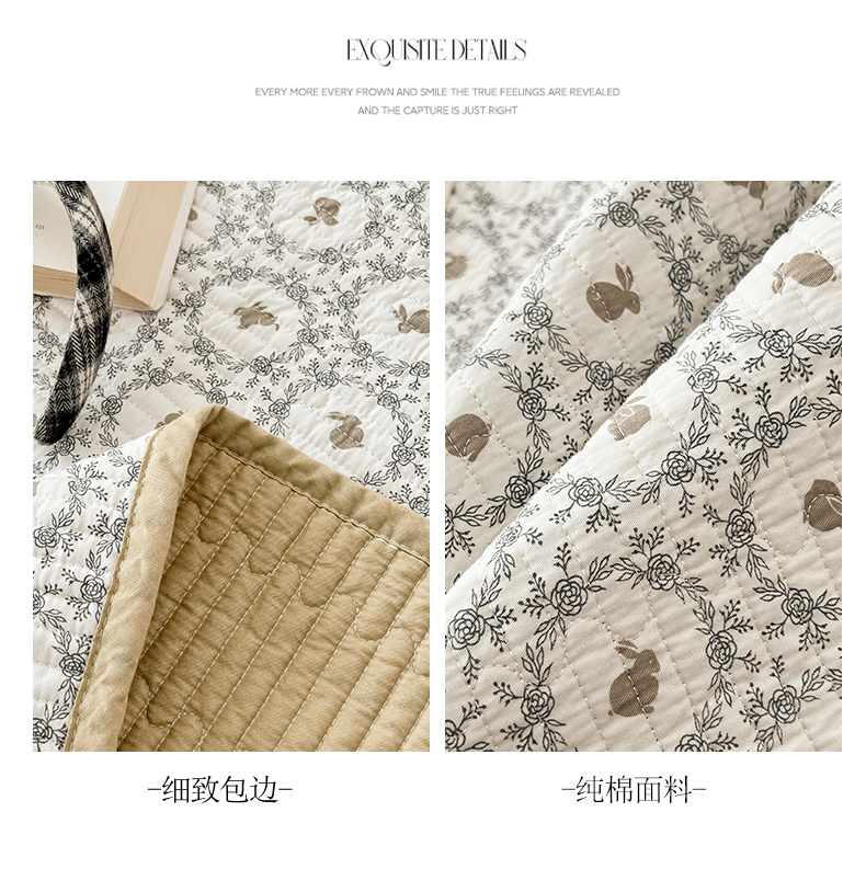 茉夕家纺 2024新款纯棉斜纹13372双面纯棉床盖 兔子花环
