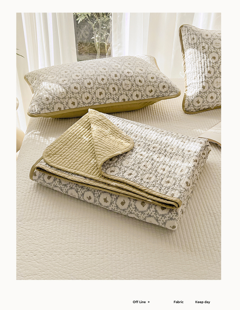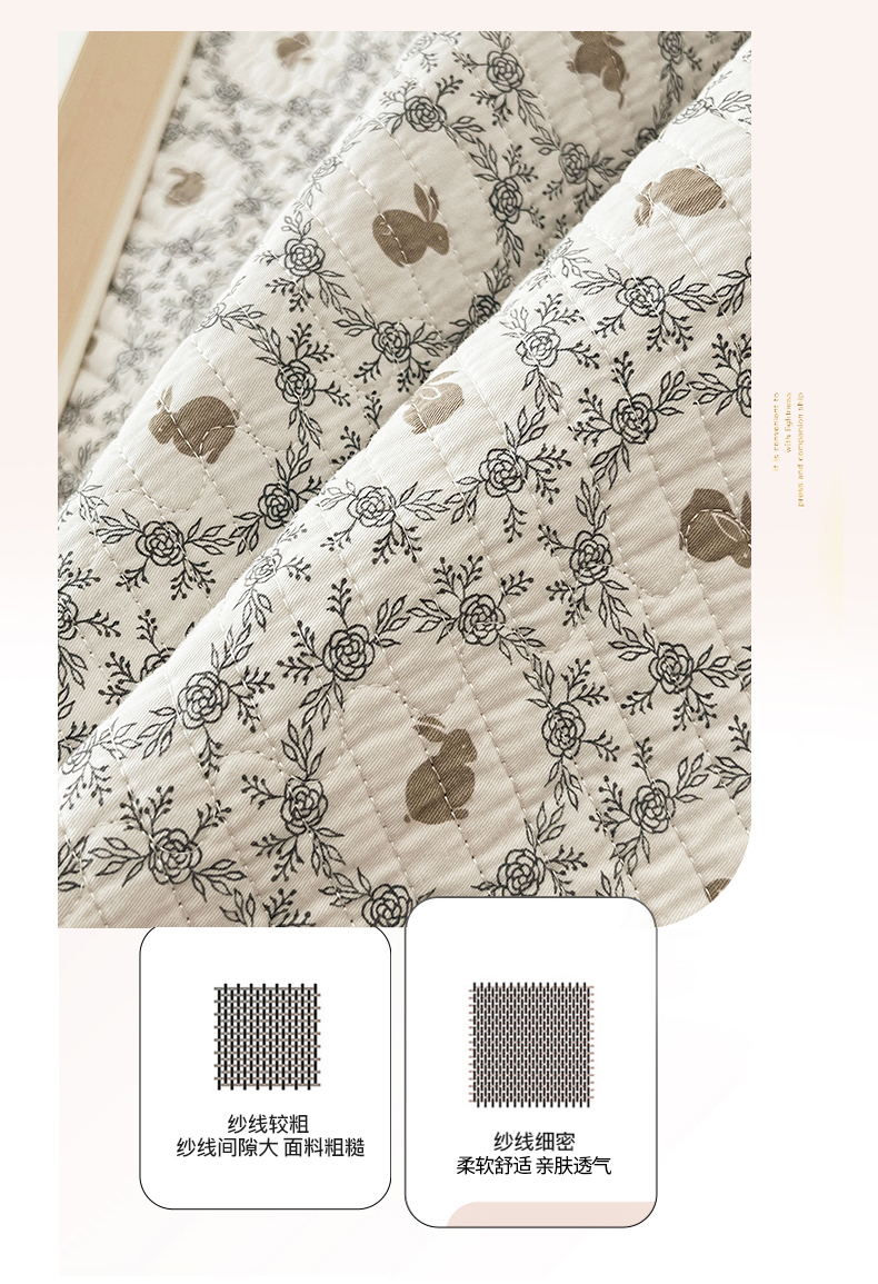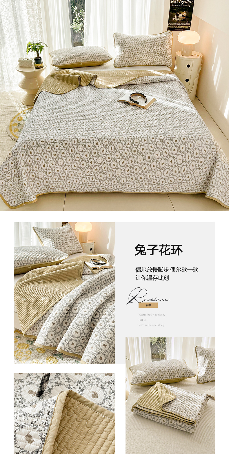 商品名称:茉夕家纺 2024新款纯棉斜纹13372双面纯棉床盖 兔子花环