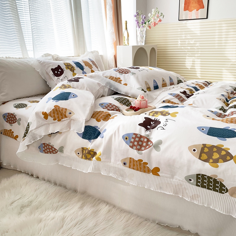 舒居家纺 2024新款13070全棉花边被套单品 年年有余