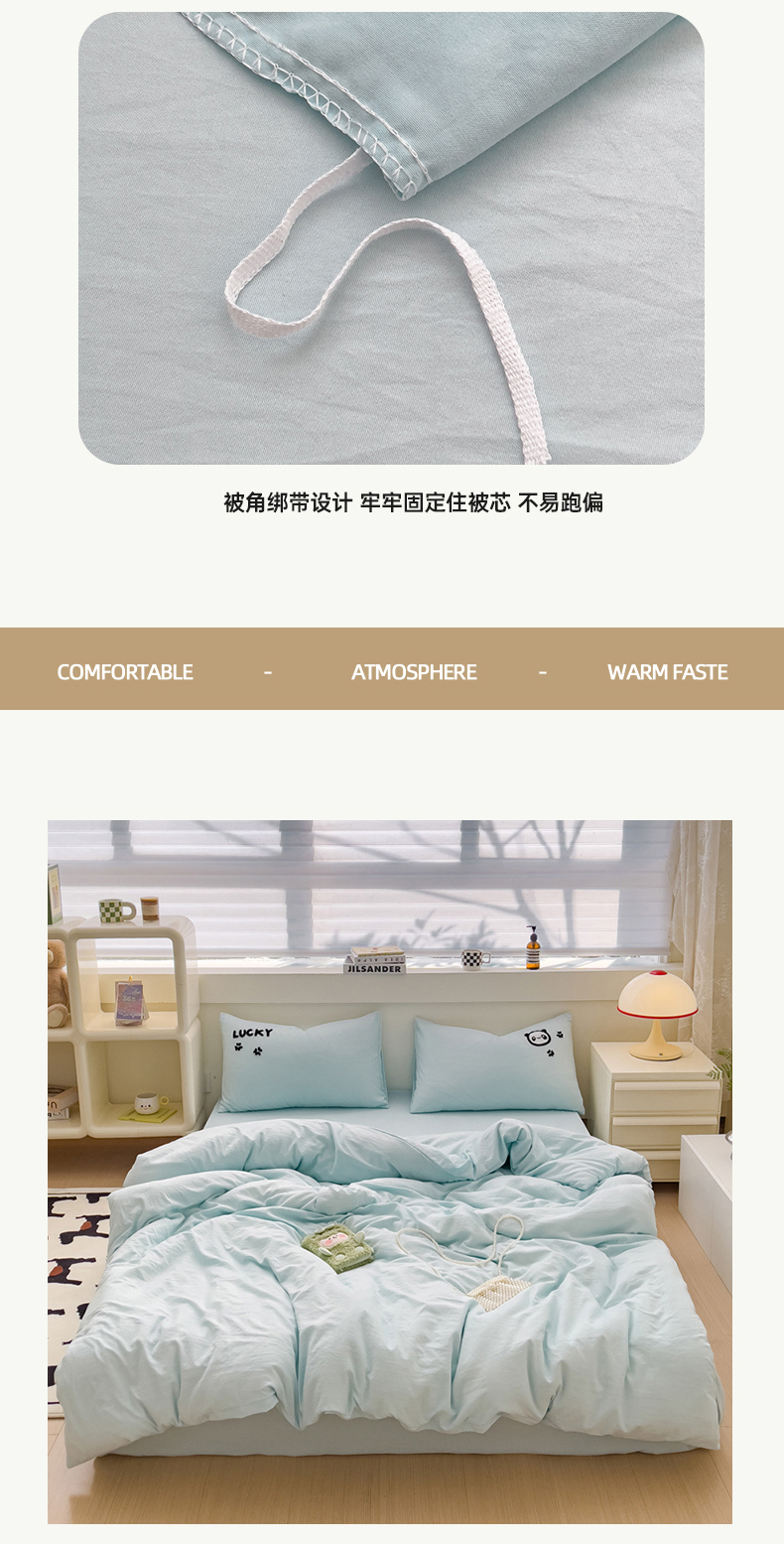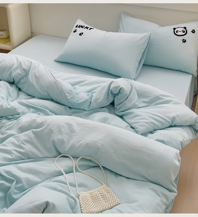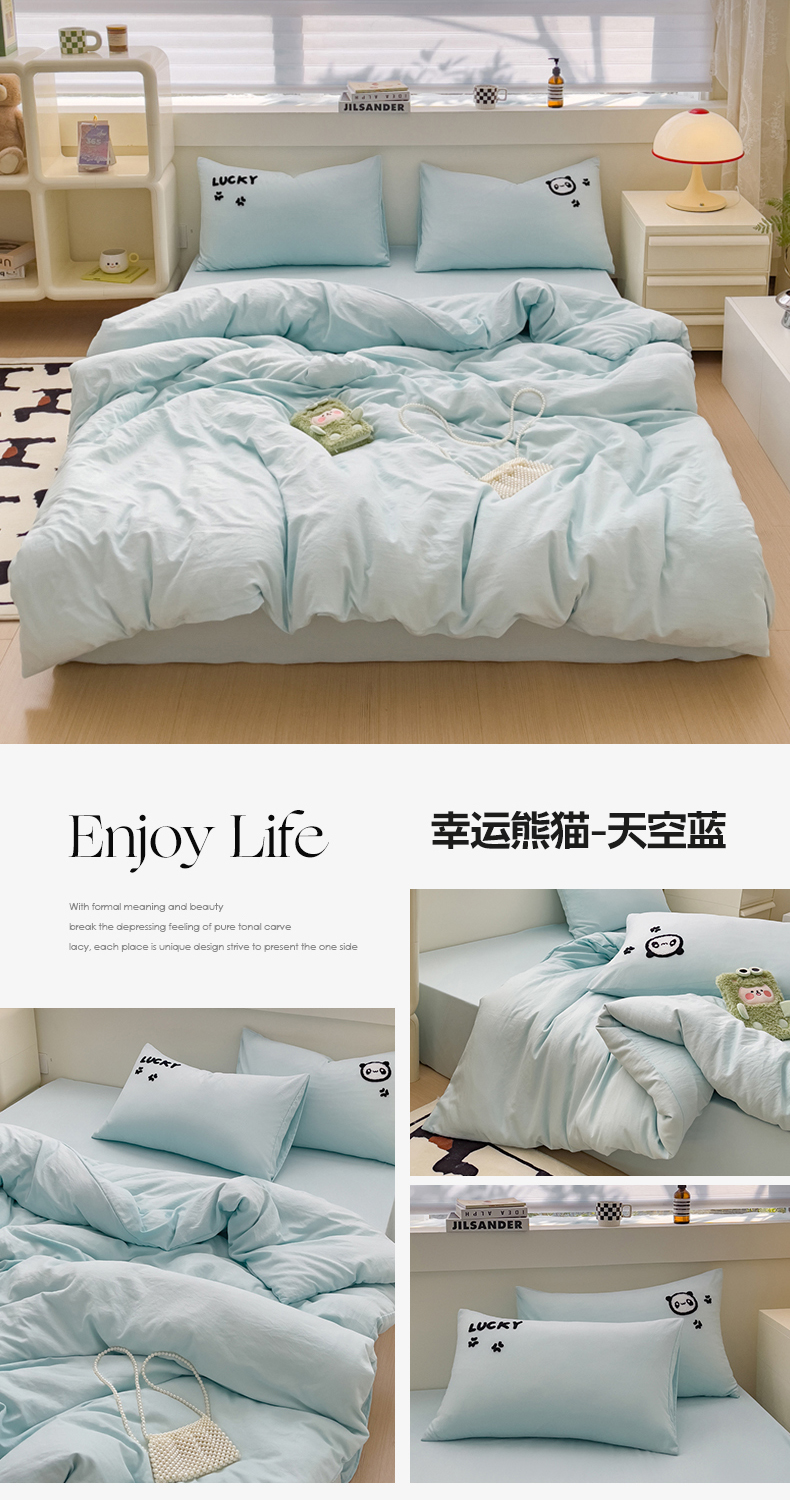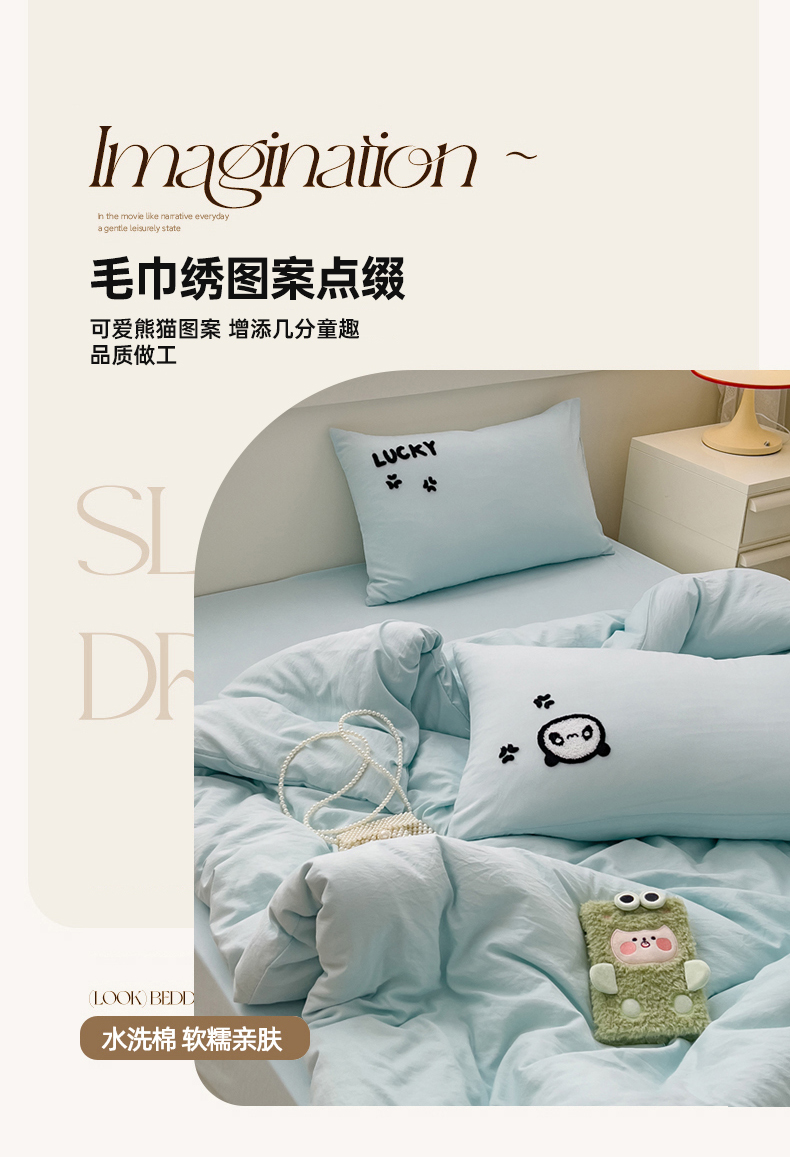 当前位置: 91家纺网 > 商品网购 > 床品套件 > 四件套 > 普通磨毛四件套 > 梦嘉居 2024新款直播热款A类ins风多巴胺色超柔亲肤磨毛纯色水洗棉毛巾绣套件-四件套 幸运熊猫-天空蓝
