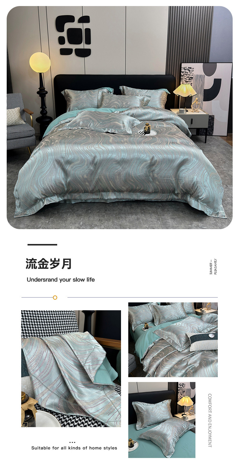 三沁2024网红直播爆款全棉高精密色织贡缎提花镂空系列四件套 流金岁月