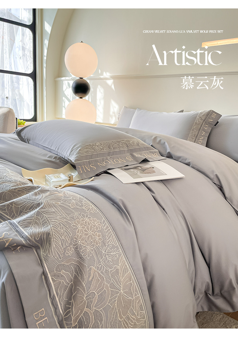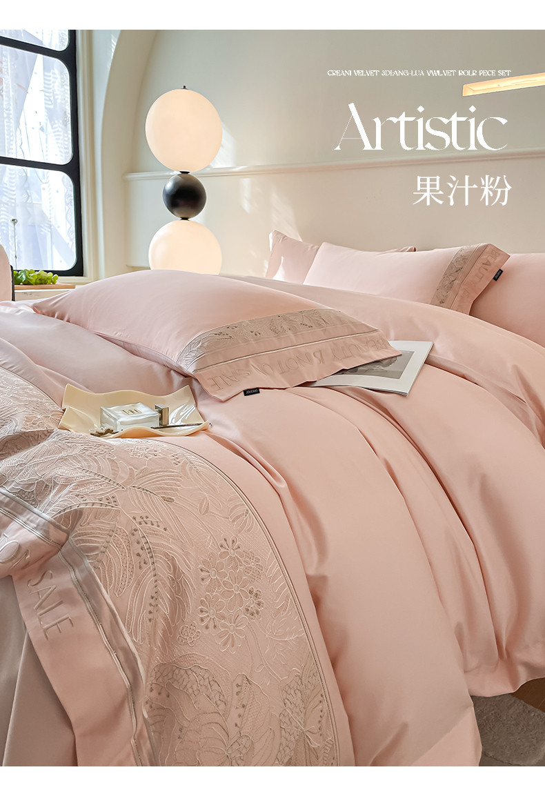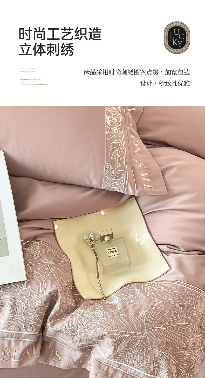 (总)【2024春夏爆款】100支长绒棉四件套全棉纯棉轻奢重工刺绣纯色