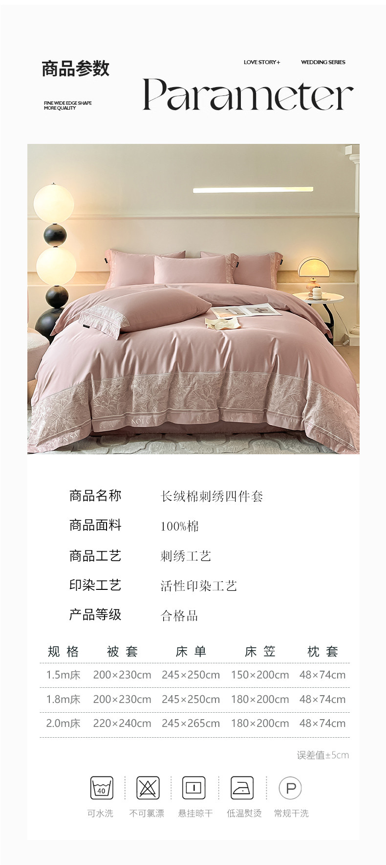 商品名称:(总)【2024春夏爆款】100支长绒棉四件套全棉纯棉轻奢重工刺绣纯色