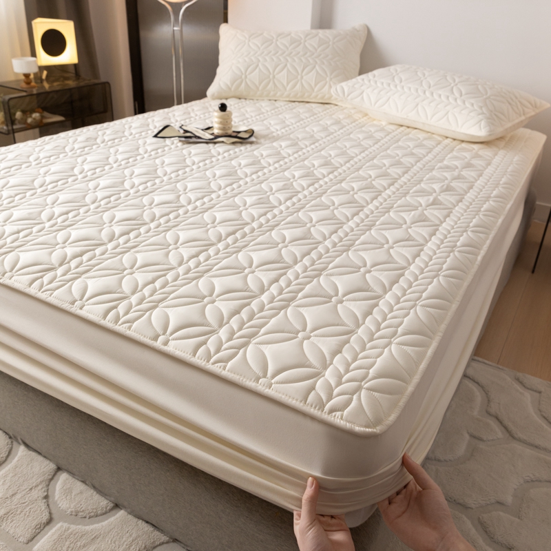 (总)鑫钰2025新款防水纯棉全棉夹棉床笠--四叶草白墙,四叶草-白,四叶草-粉,四叶草-灰,四叶草-驼,四叶草-紫