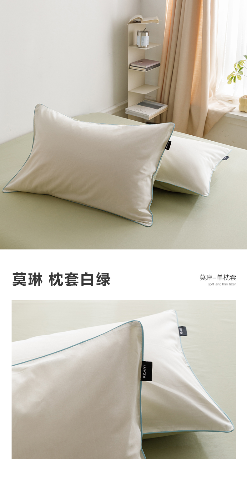 商品名称:卡姿家纺 2024春夏纯色双拼嵌绳款单枕套—莫琳 莫琳 枕套白绿