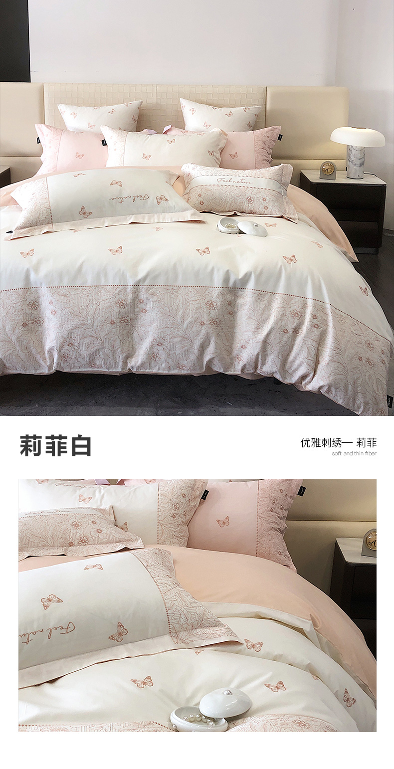 商品名称:卡姿家纺 2024春夏优雅刺绣四件套— 莉菲 莉菲白