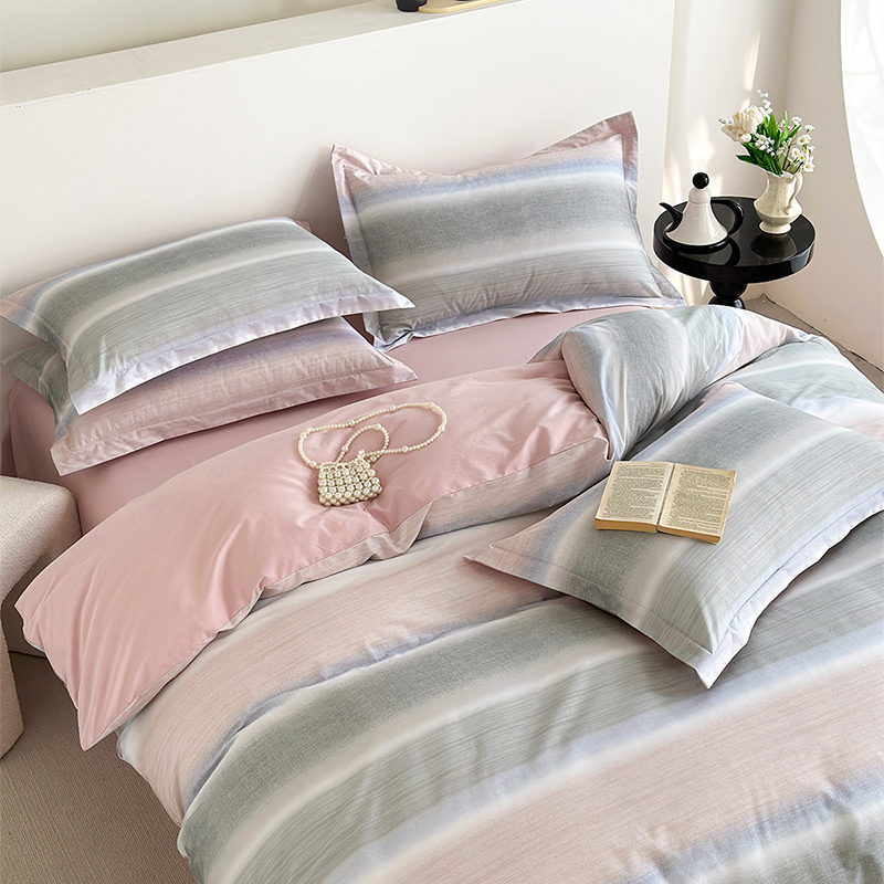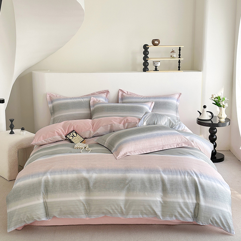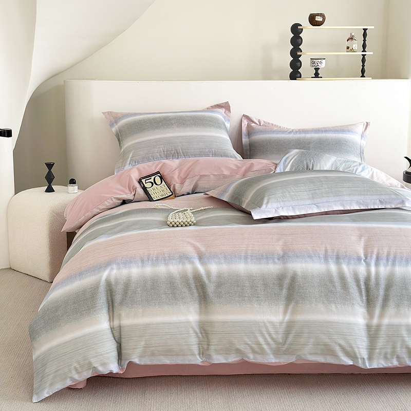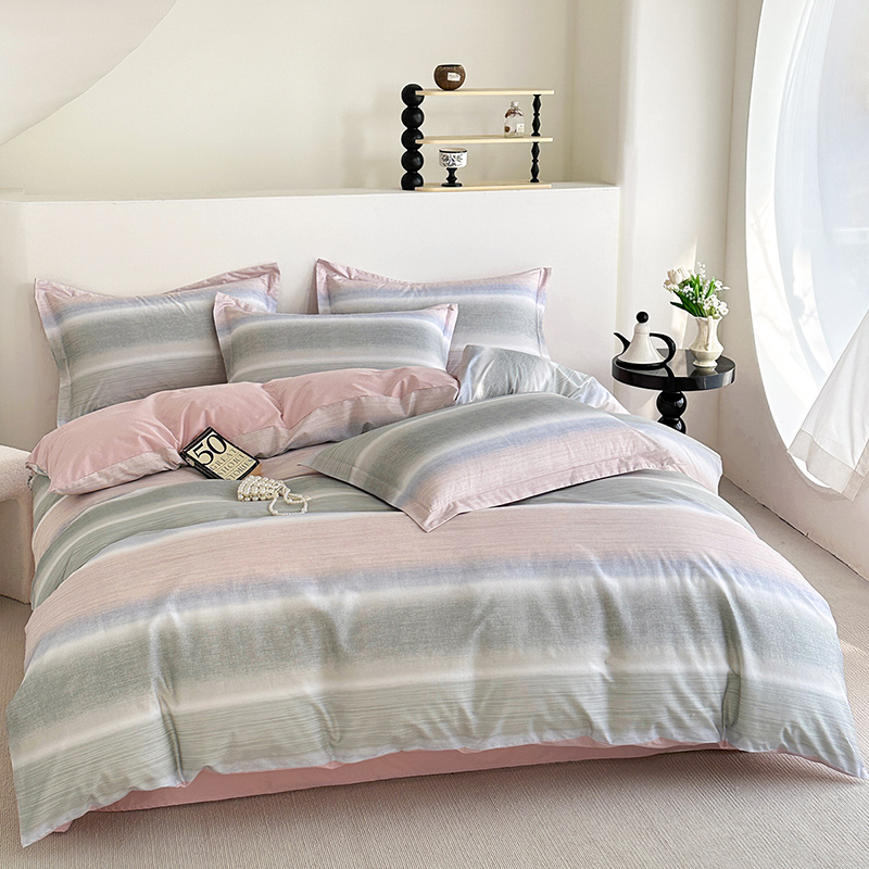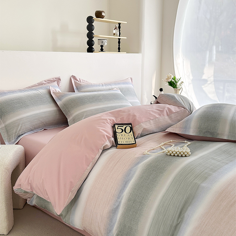 商品名称: 元元被芯 2024新款全棉长绒棉数码印花四件套全棉四件套纯棉四件套 阳光彩条-粉