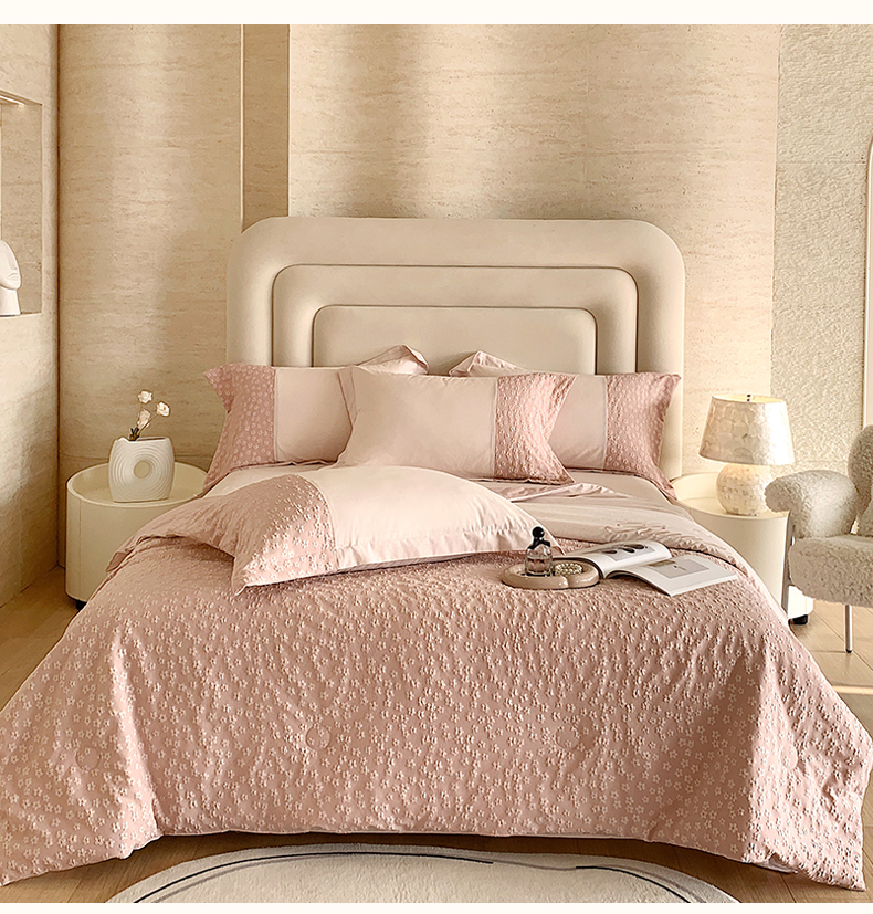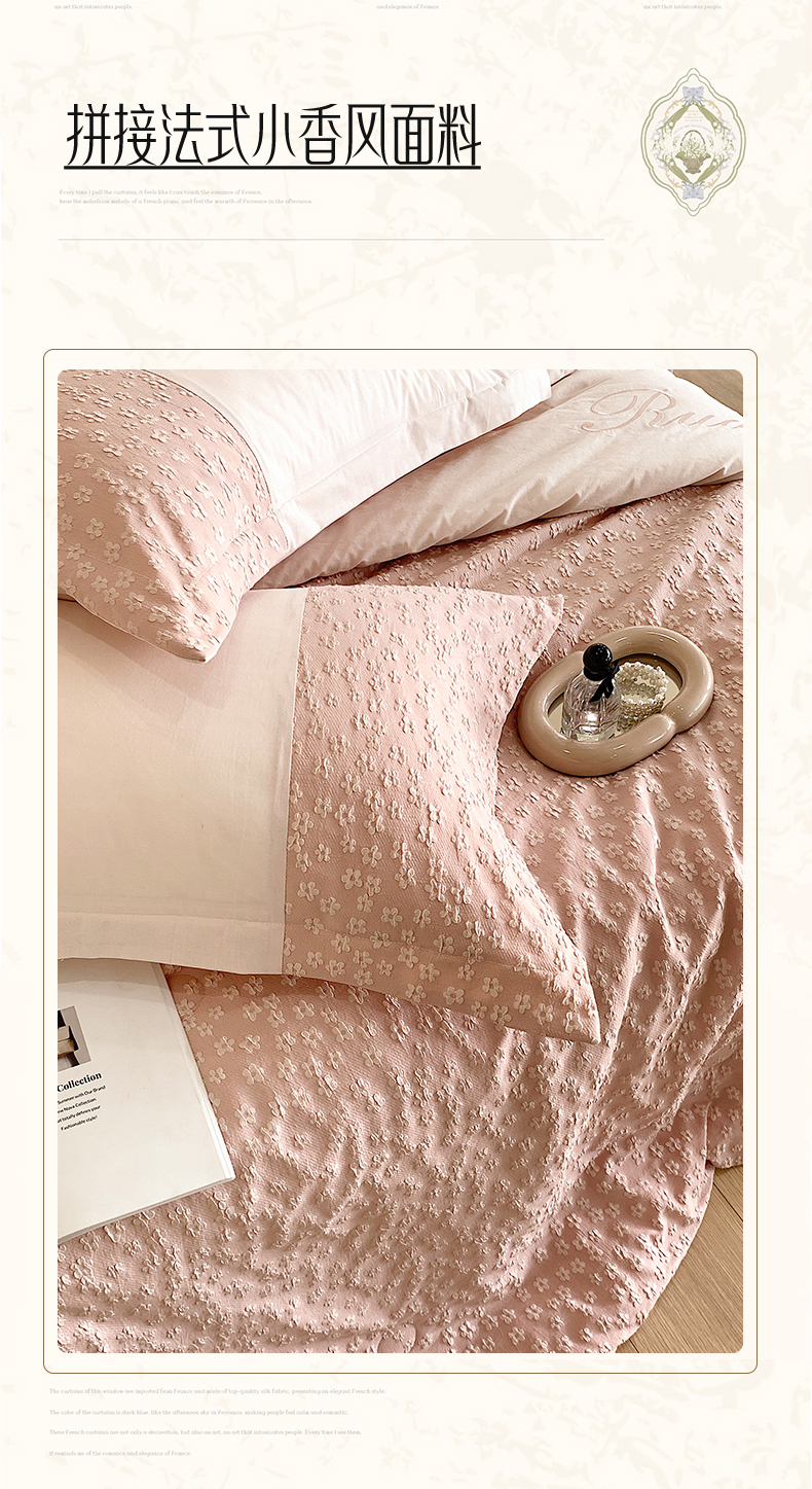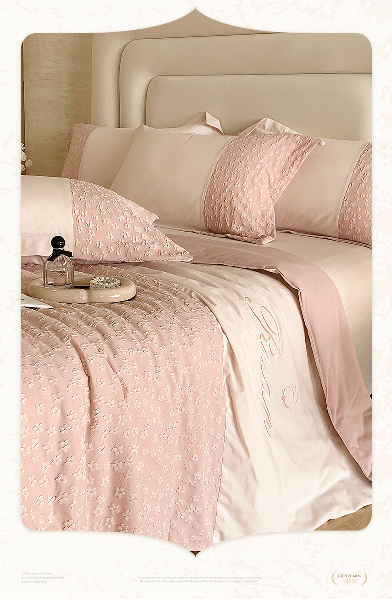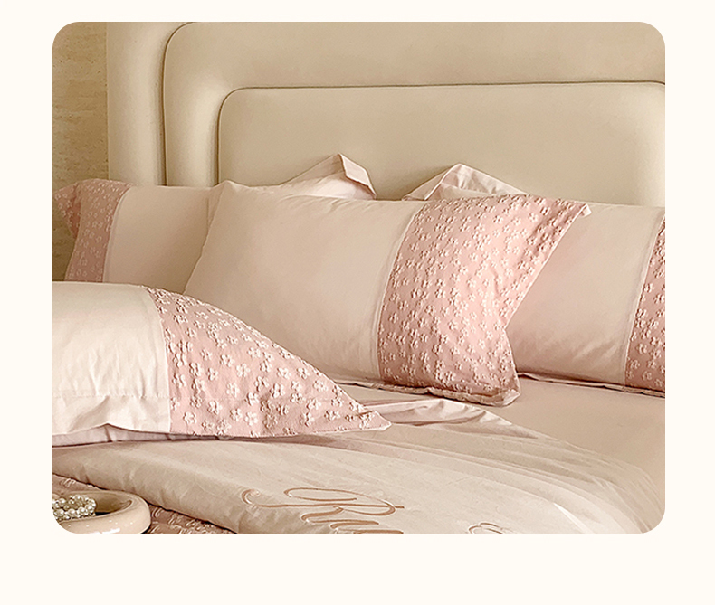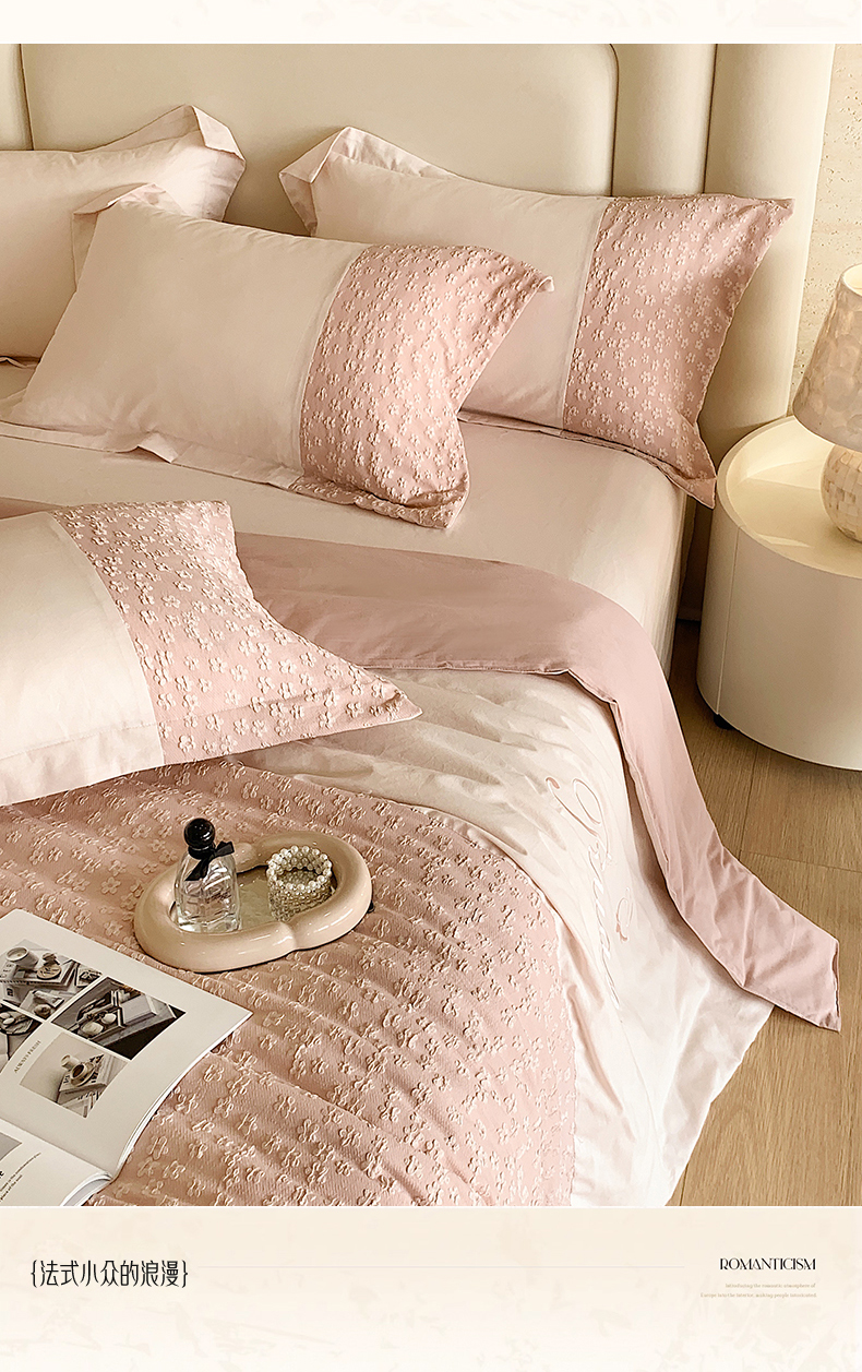 商品名称:换种生活 2024新款全棉活性印染刺绣四件套-法式小清新系列 冰玫粉