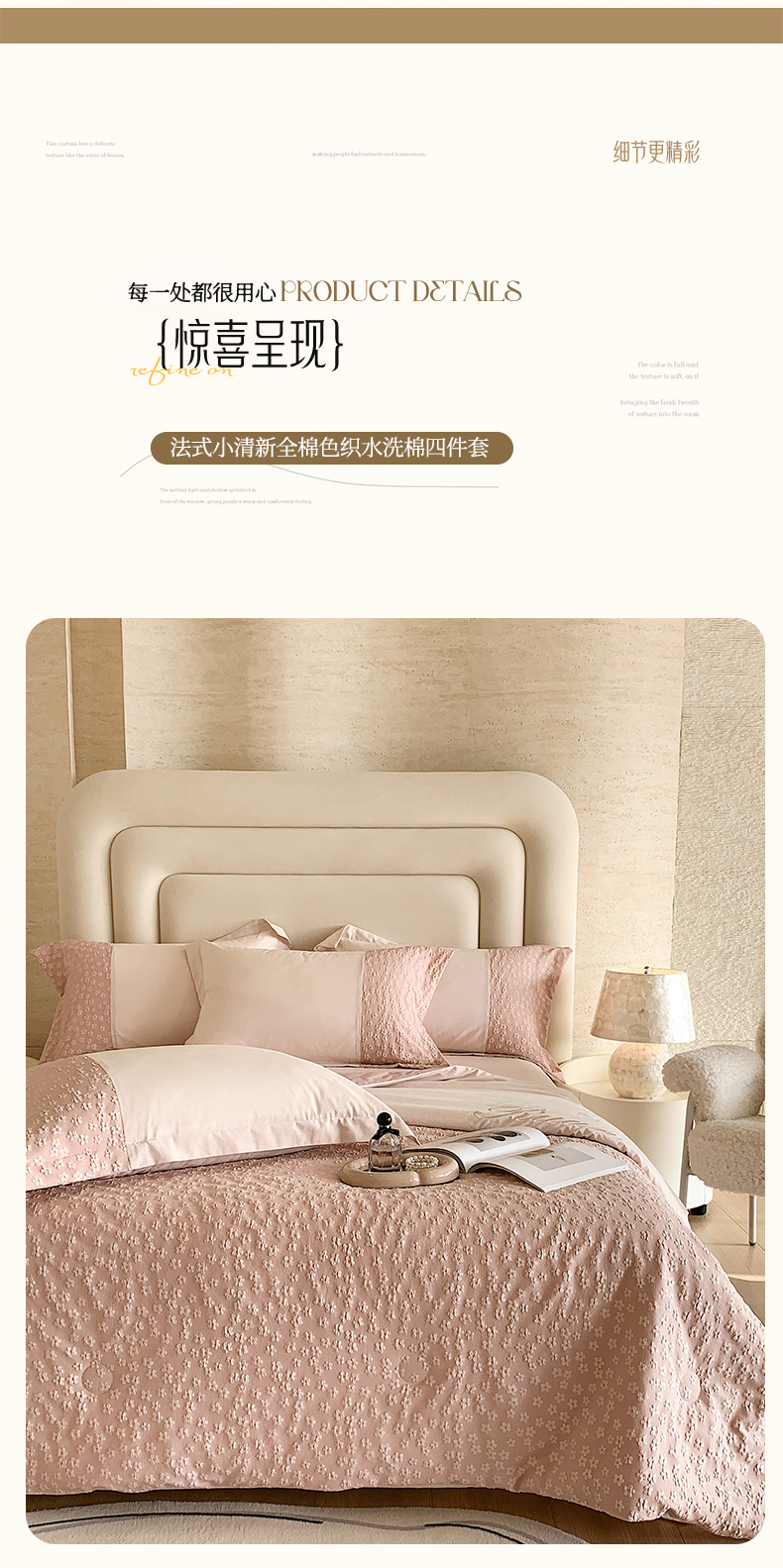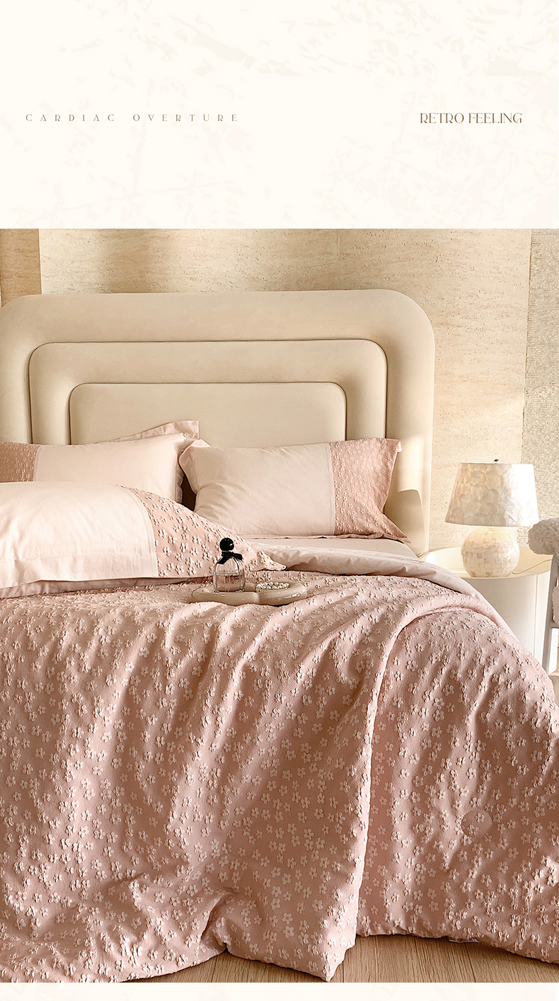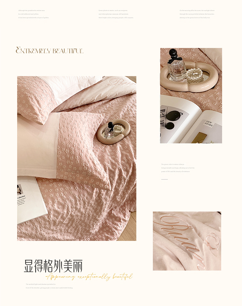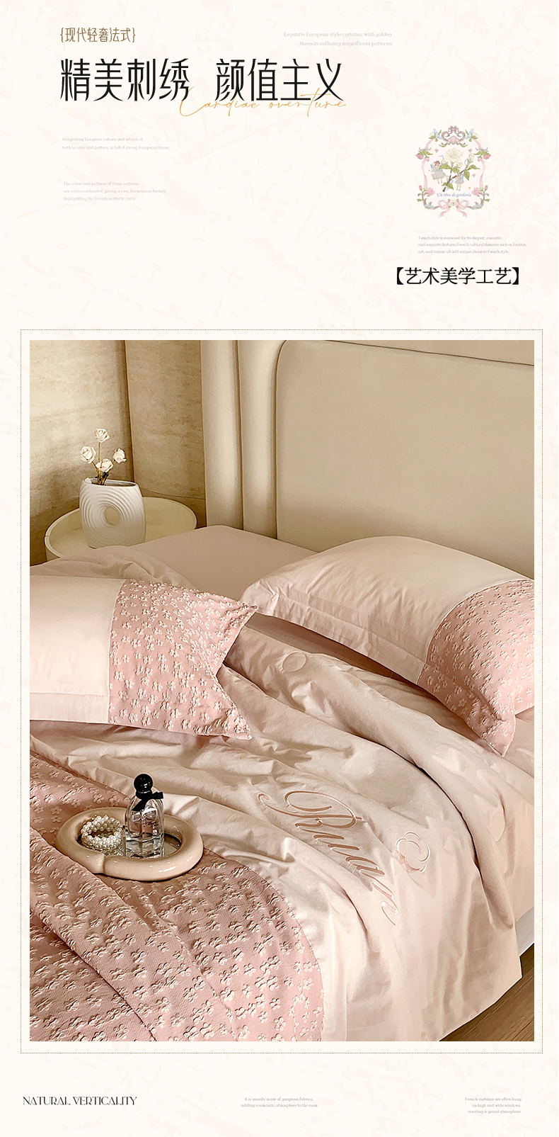 商品名称:换种生活 2024新款全棉活性印染刺绣四件套-法式小清新系列 冰玫粉