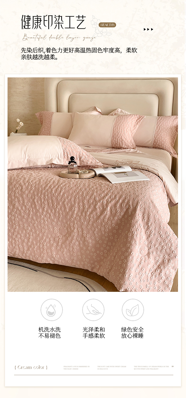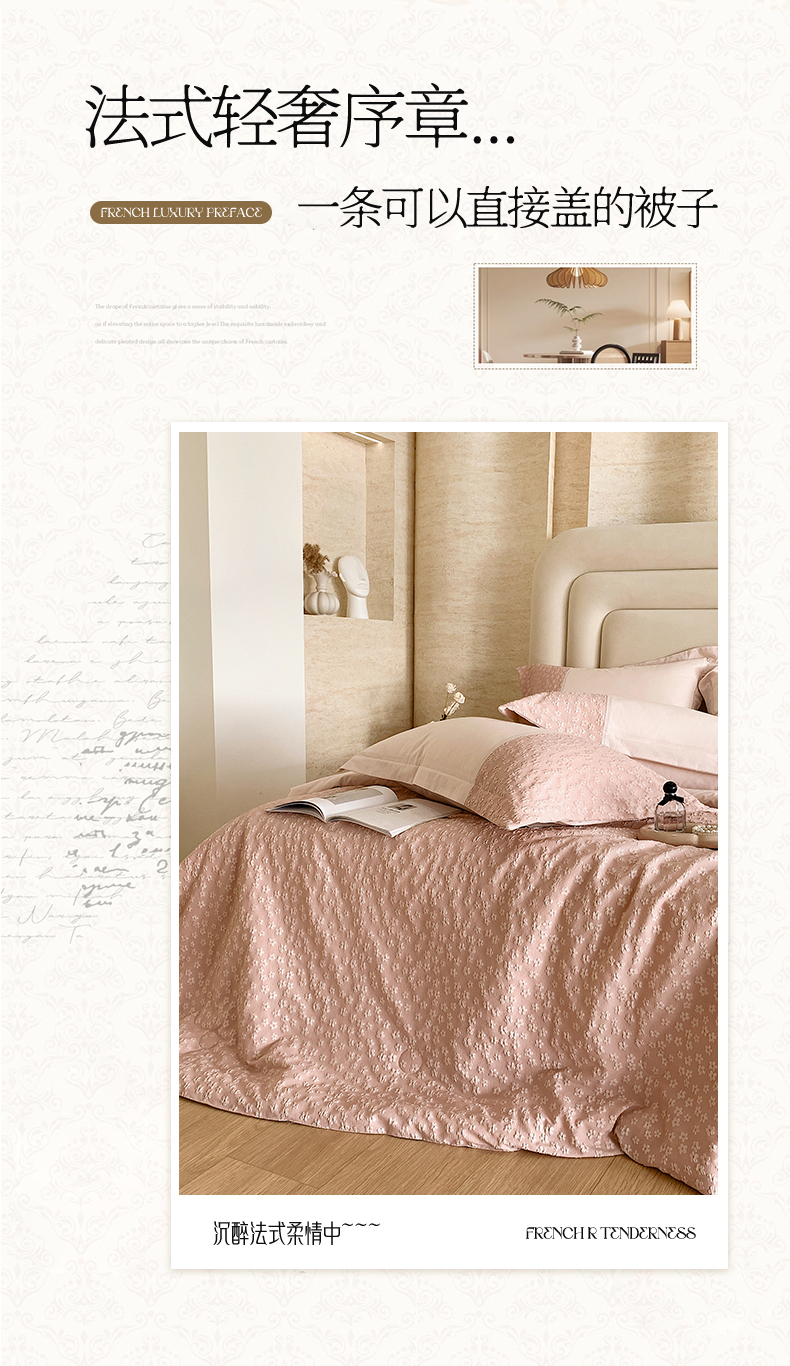 (总)换种生活 2024新款法式小清新全棉夏被四件套,冰玫粉,海之兰,奶昔白,青稞绿,生椰拿铁,松露黑