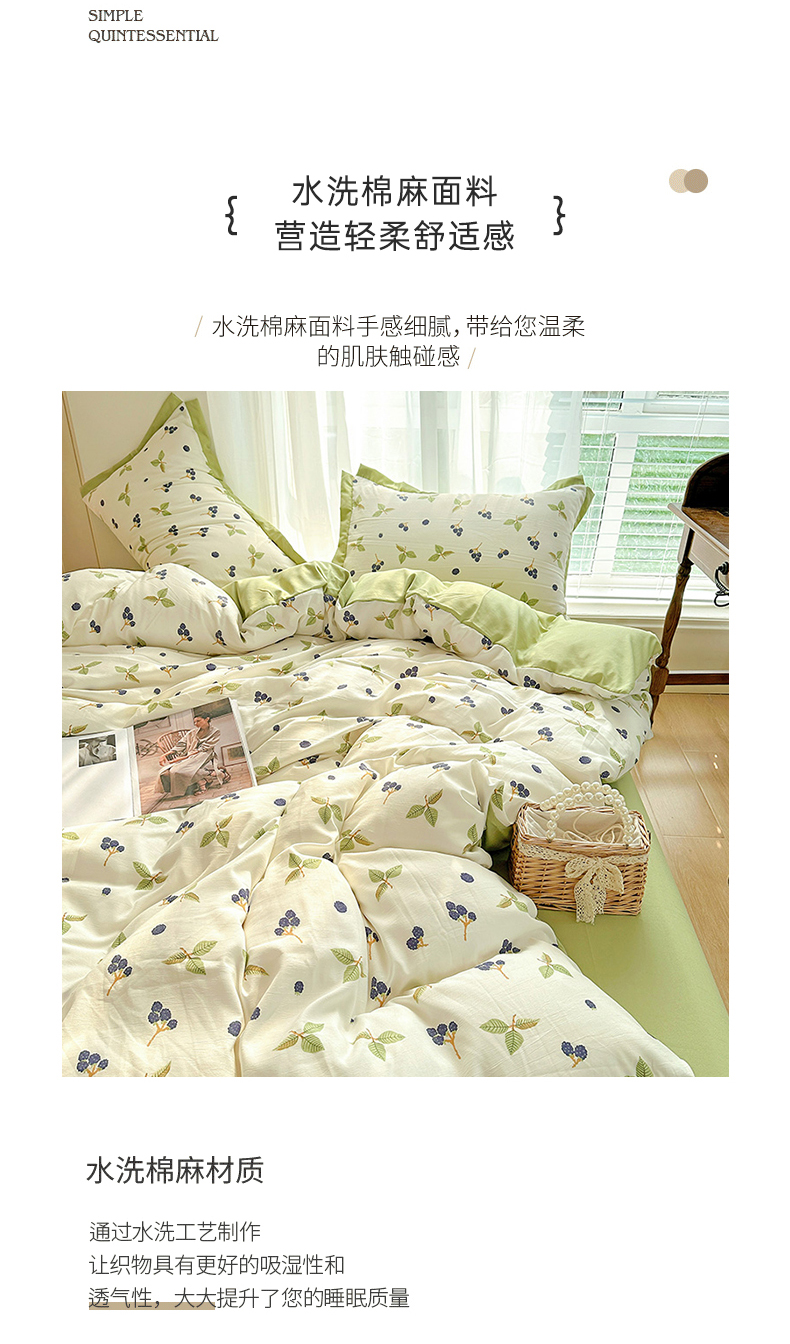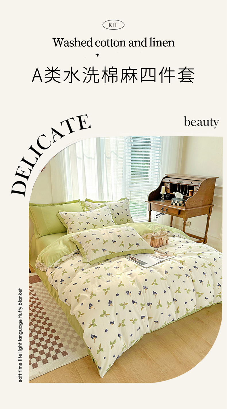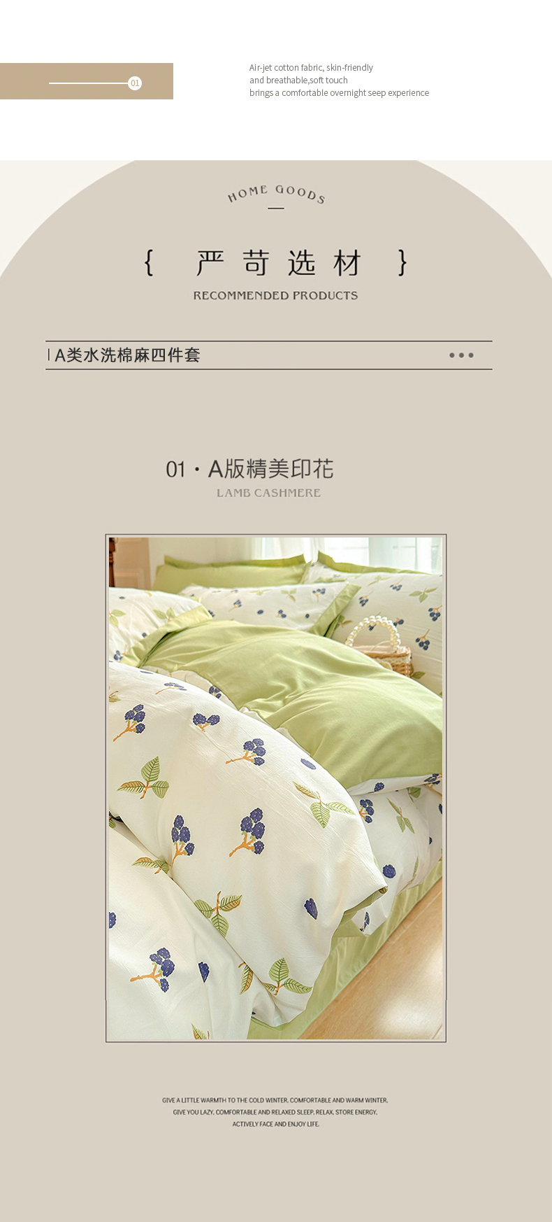 当前位置: 91家纺网 > 商品网购 > 床品套件 > 四件套 > 化纤活性四件套 > 卡普二店 2024新款A类水洗棉麻四件套 桑葚情怀