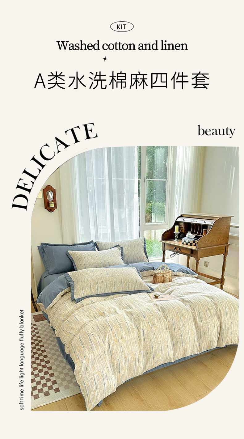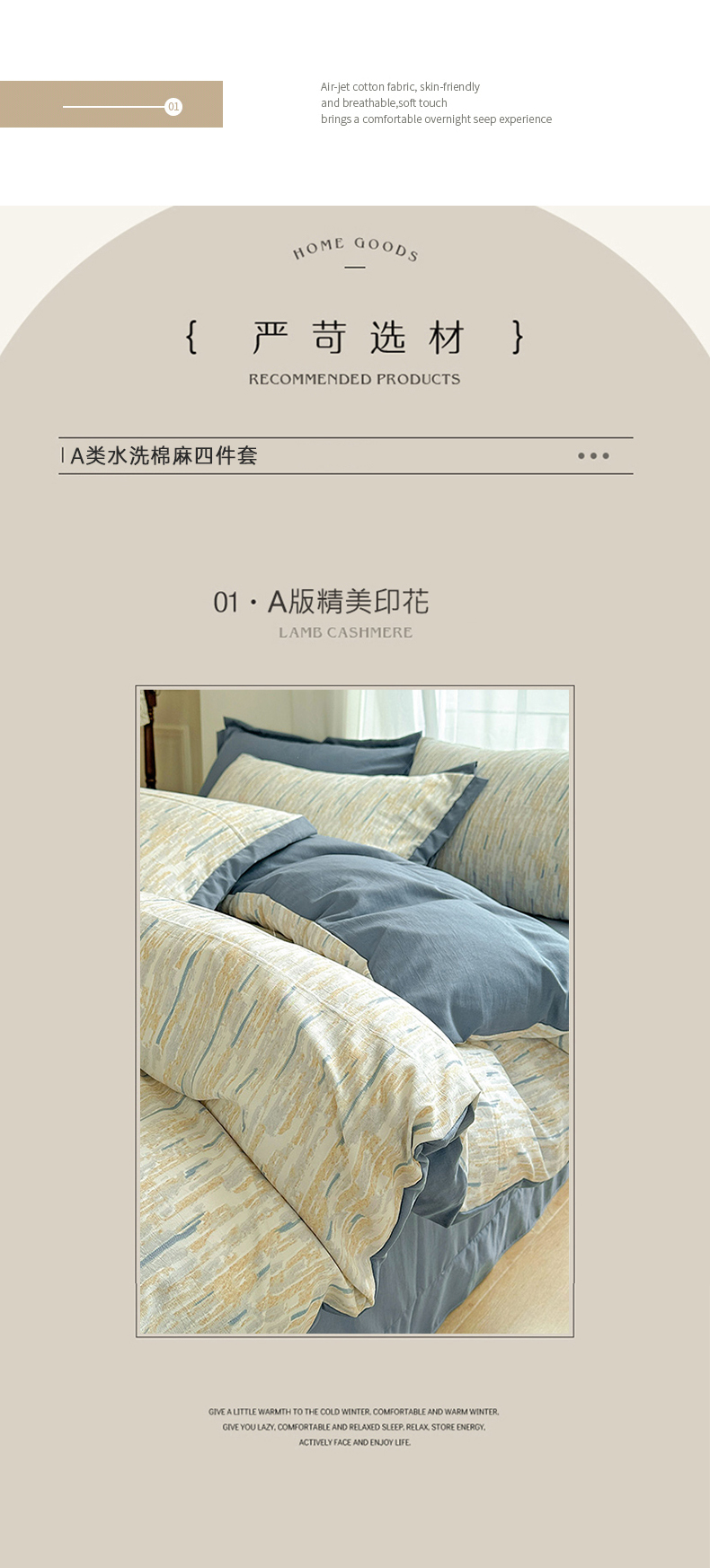 当前位置: 91家纺网 > 商品网购 > 床品套件 > 四件套 > 化纤活性四件套 > 卡普二店 2024新款A类水洗棉麻四件套 典雅风尚