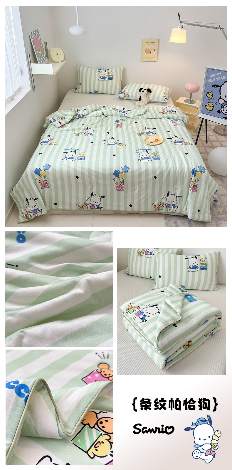 (总)木堇家居 2025三丽鸥针织棉麻绳大豆夏被,爱心美乐蒂,冰激凌帕恰狗,波点库洛米,吃瓜帕恰狗,大眼蛙,粉格美乐蒂,枫叶三丽鸥,蓝格帕恰狗,朋友大耳狗,三丽鸥家族,玉桂狗,紫色库洛米,紫色kt猫