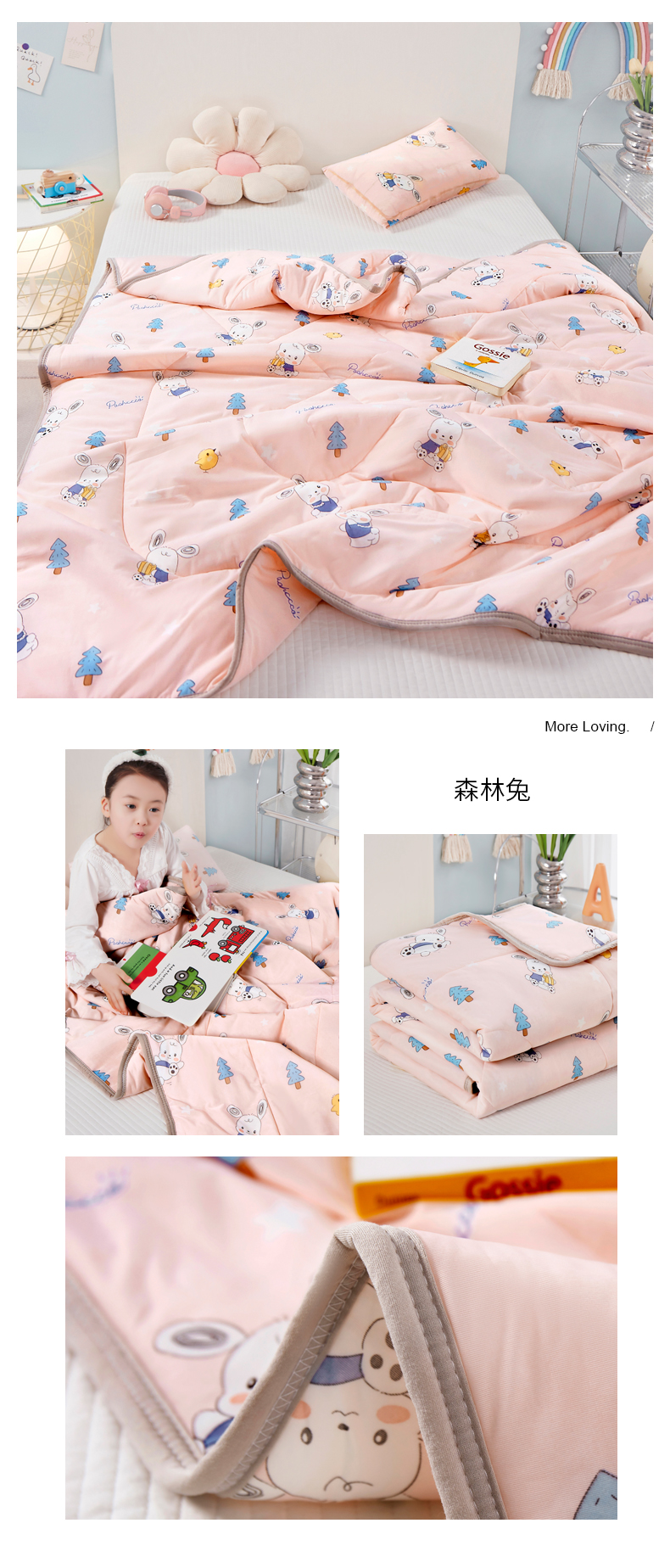 商品名称:丝涟家居 2025新款A类卡通小清新双面印花凉感丝夏被 森林兔