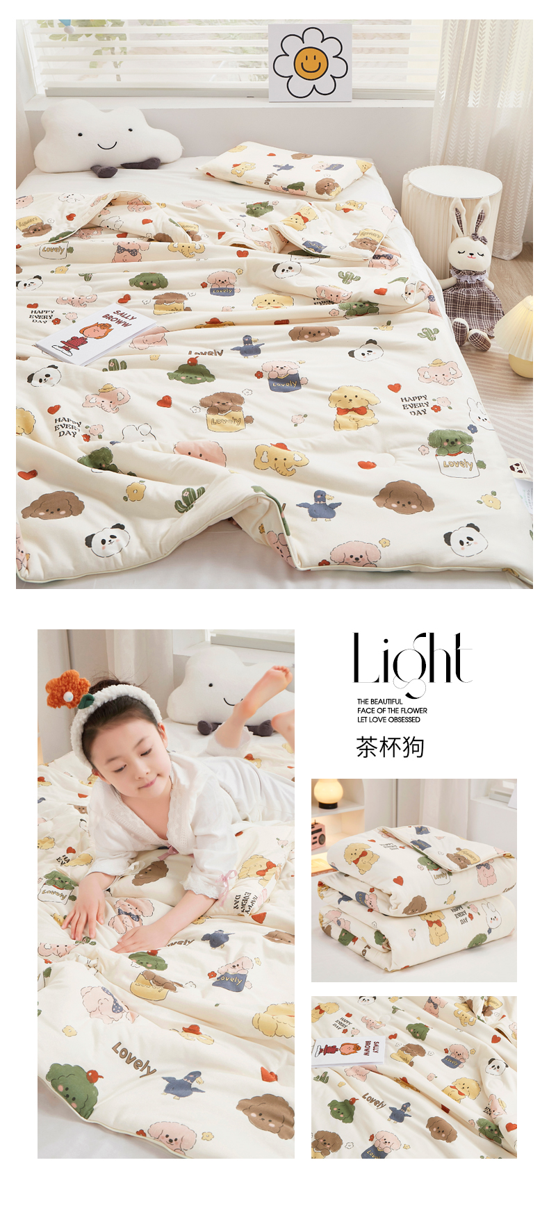 商品名称:丝涟家居 2025新款A类双面针织棉卡通小清新滚绳工艺夏被 茶杯狗