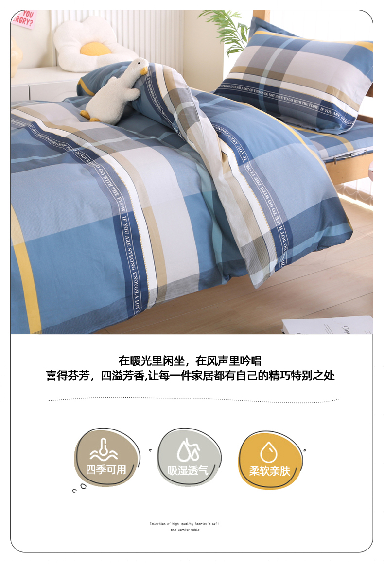 当前位置: 91家纺网 > 商品网购 > 床品套件 > 三件套 > 凯森2024款13372全棉三件套床套款学生宿舍寝室六件套 卡乐-蓝